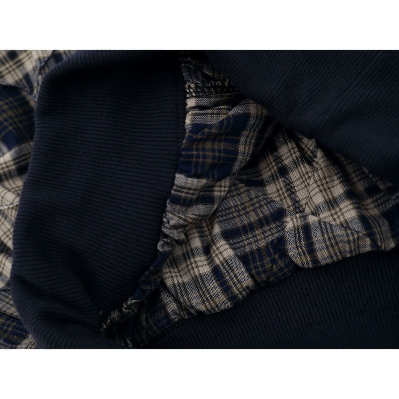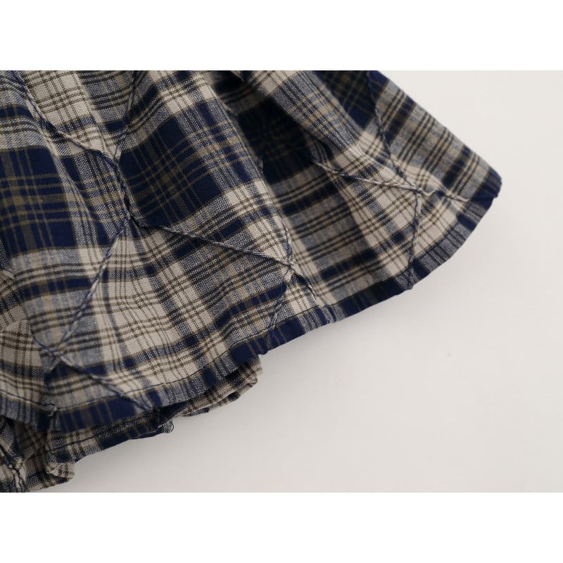 落ち着いた色合いのチェック柄が大人っぽさと可愛らしさを両立したデザイン。