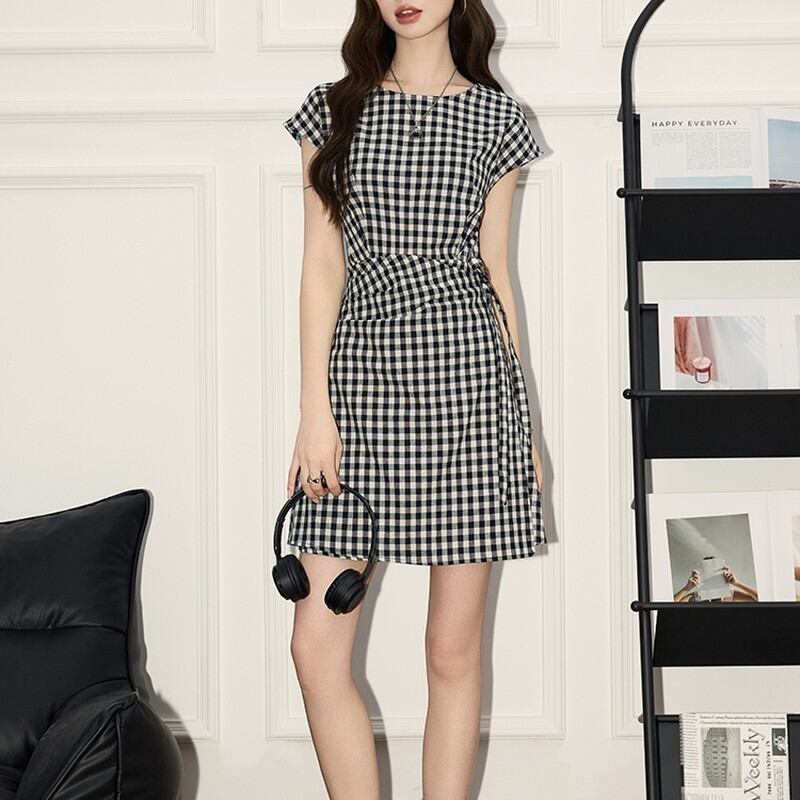ラップデザインがアクセントになったギンガムチェック柄ワンピースです。