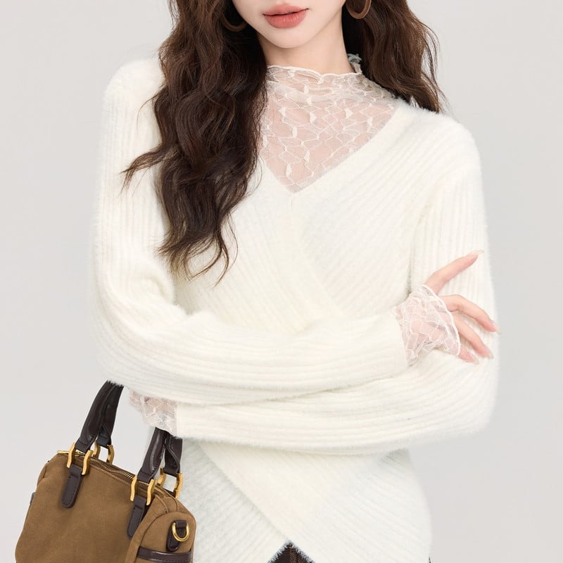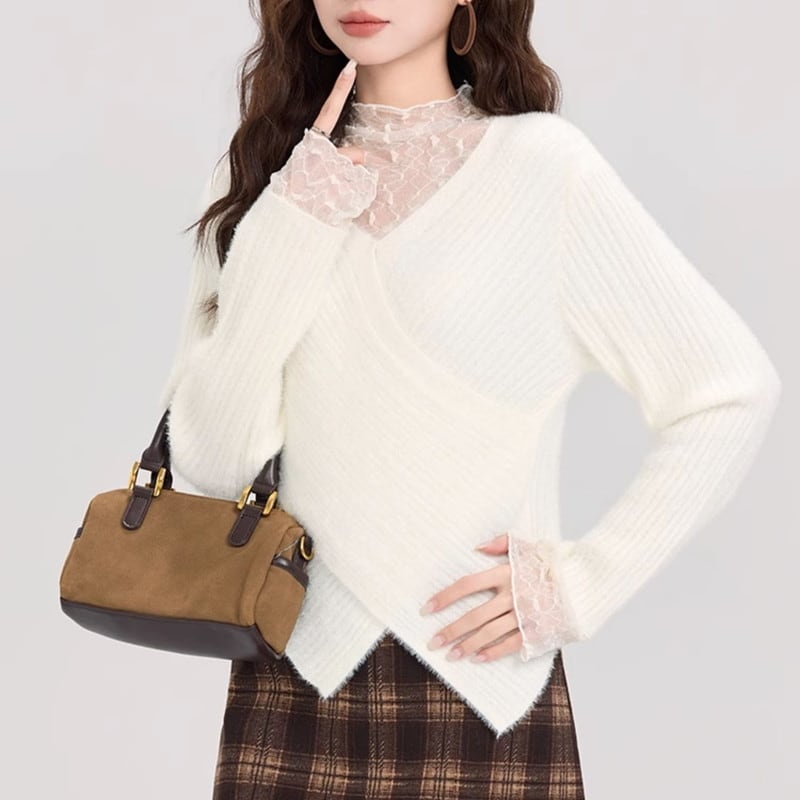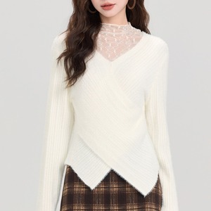 立体感のあるクロスデザインが女性らしいシルエットを演出するニットです。