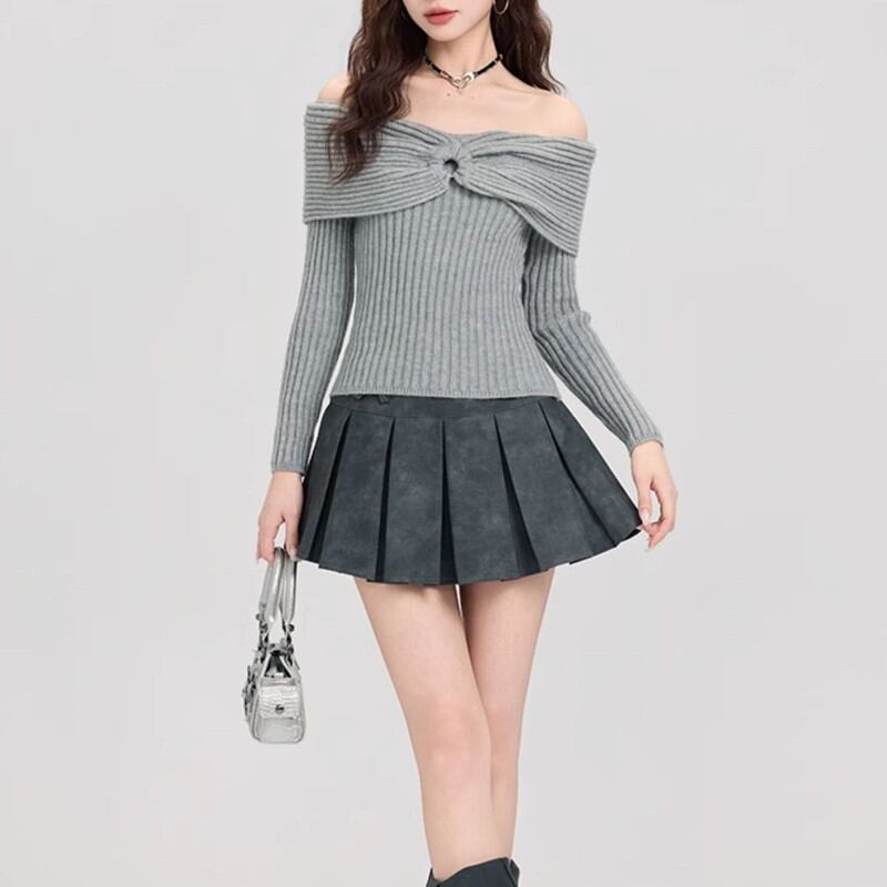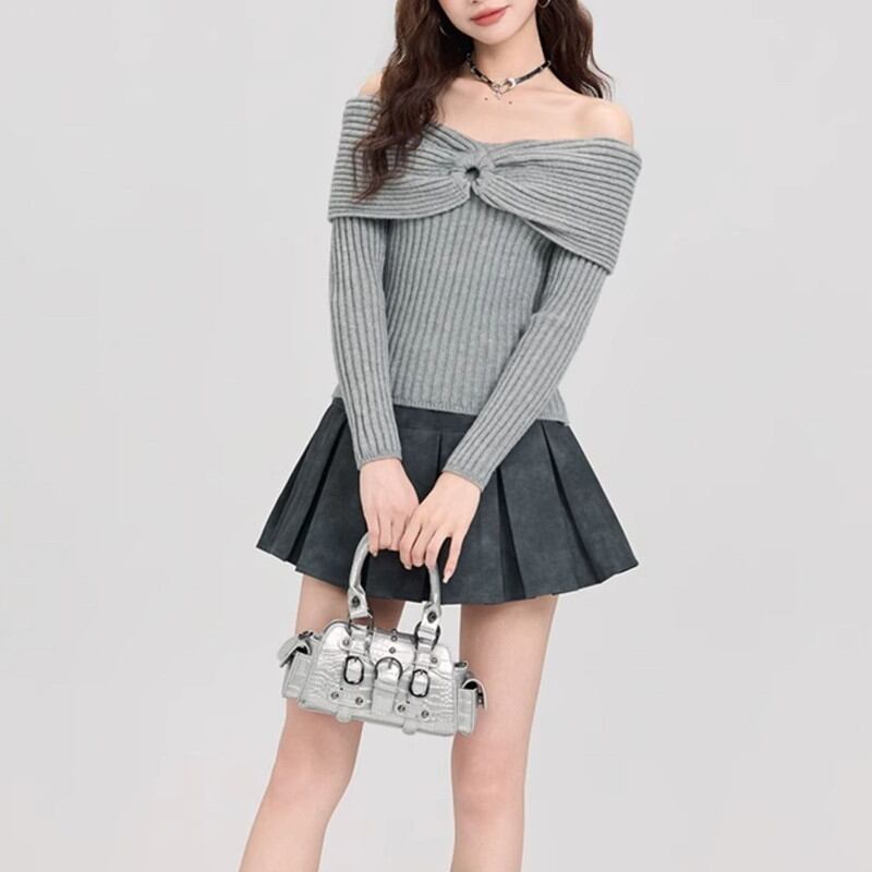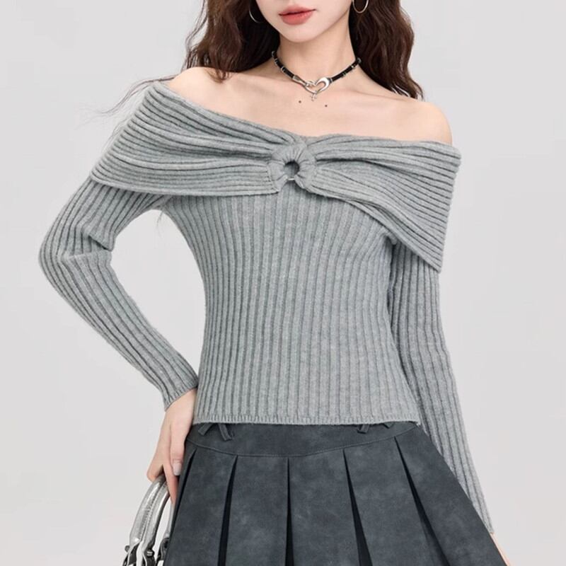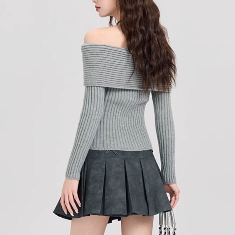 程よい肌見せが叶うオフショルダーデザインのリブニットです。