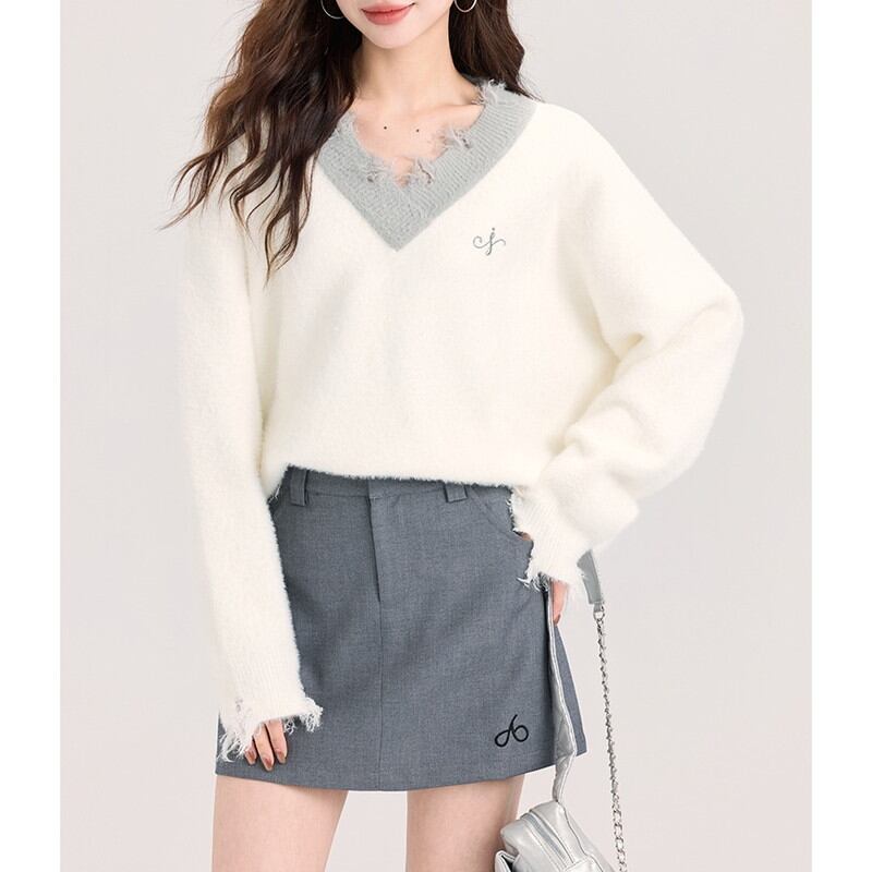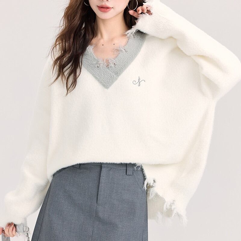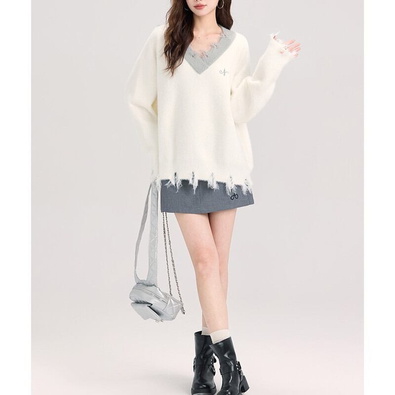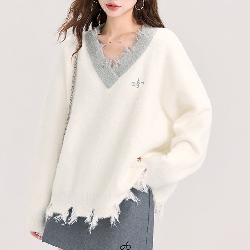 Vネックラインと裾にあしらわれたフリンジデザインが、さりげなく個性をプラス。