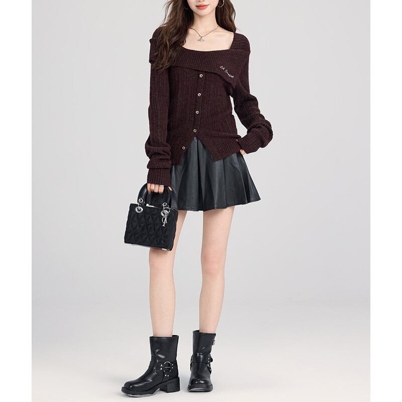 off-shoulder rib knit cardigan m0865
