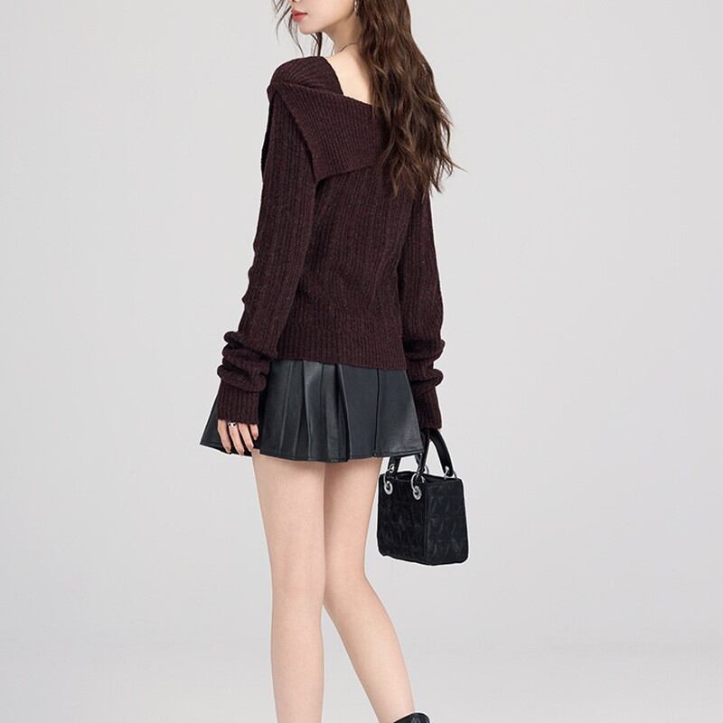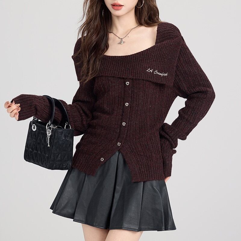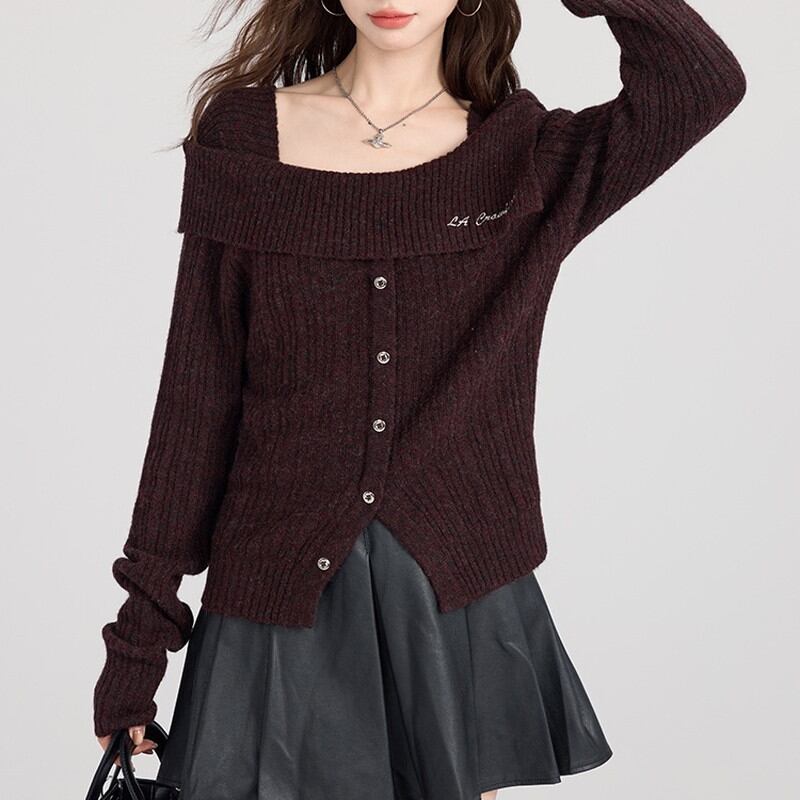 大きく開いたオフショルダーデザインが女性らしい抜け感を演出するリブニットカーディガンです。