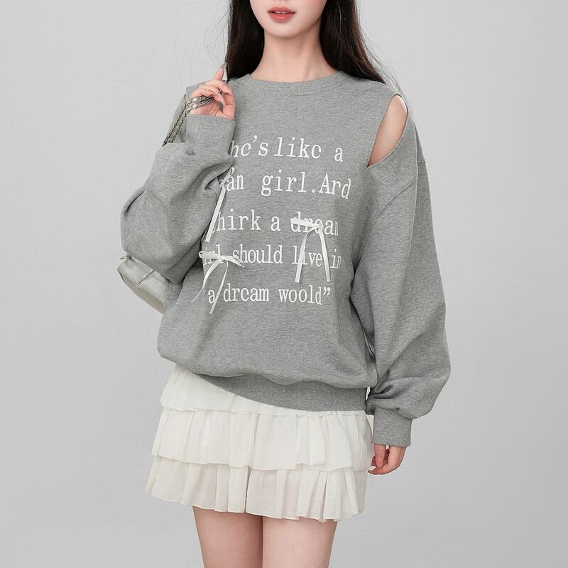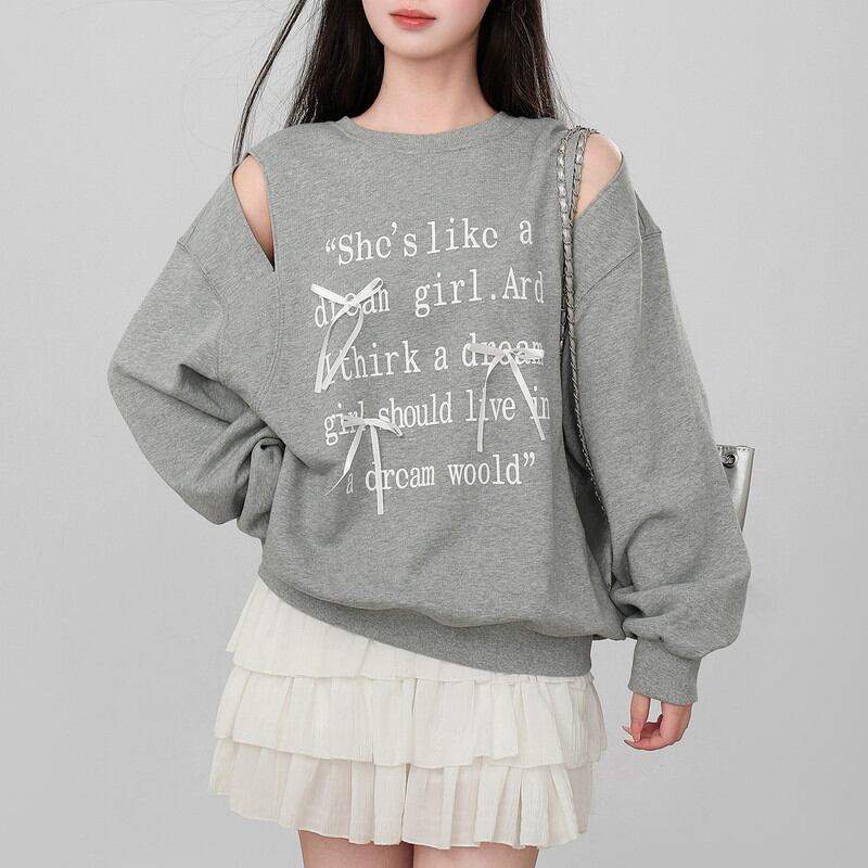 肩あきデザインとフロントのロゴプリントが印象的なプルオーバーです。