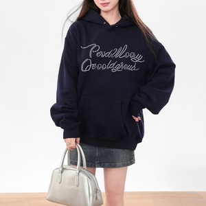 華やかなロゴラインストーンが目を惹くカジュアルパーカーです。