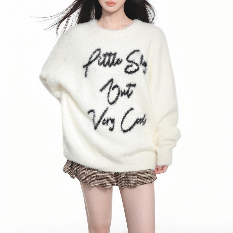 ふんわりとした起毛感が魅力のロゴ入りニットプルオーバーです。