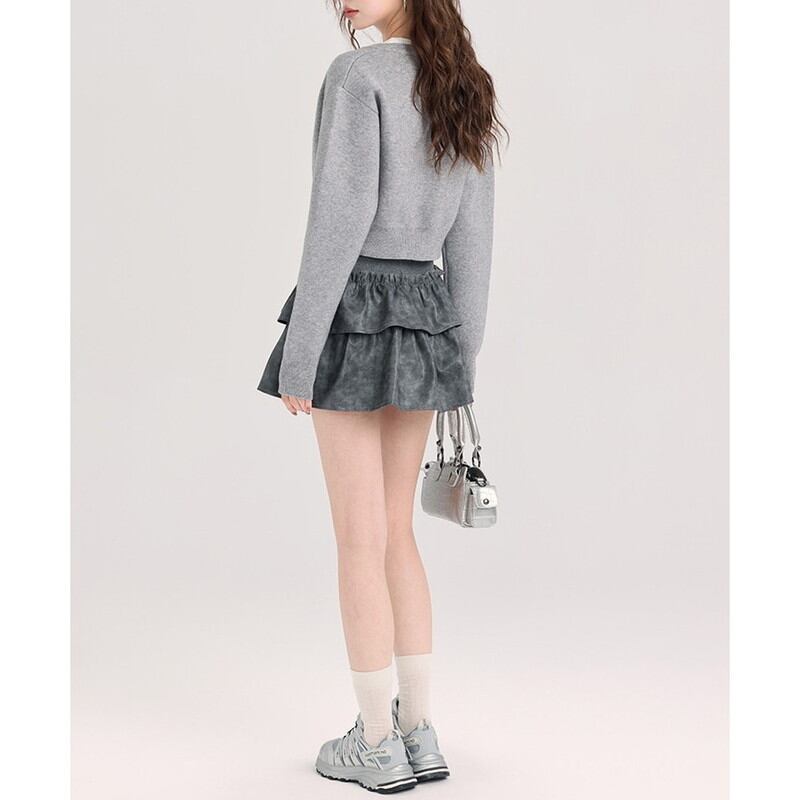 シンプルで着回し力抜群のショート丈ニットカーディガンです。