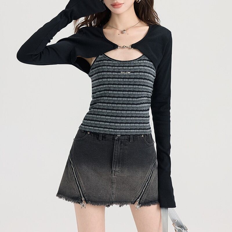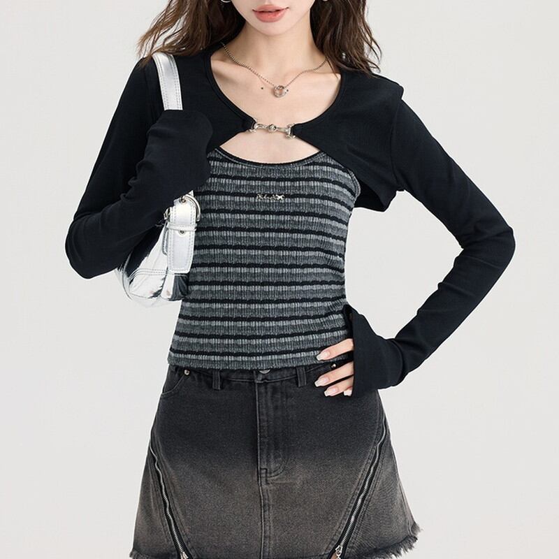 layered bolero&stripe-camisole set m0906
