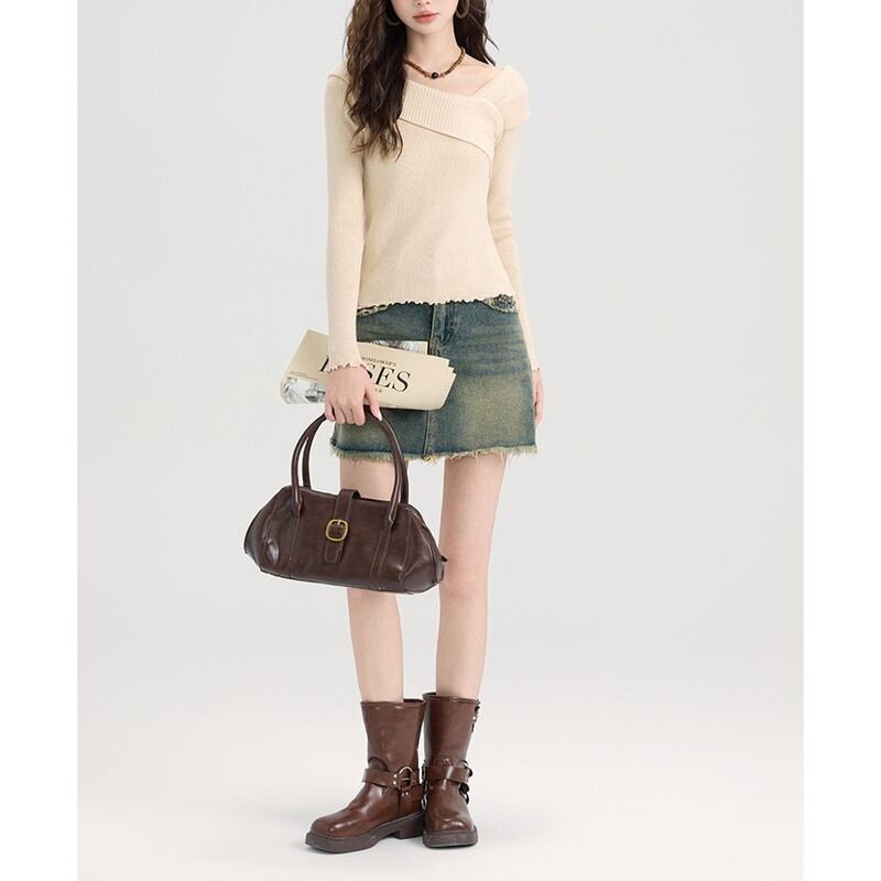 細めのリブ編みが身体のラインをきれいに引き立て、女性らしさを演出します。