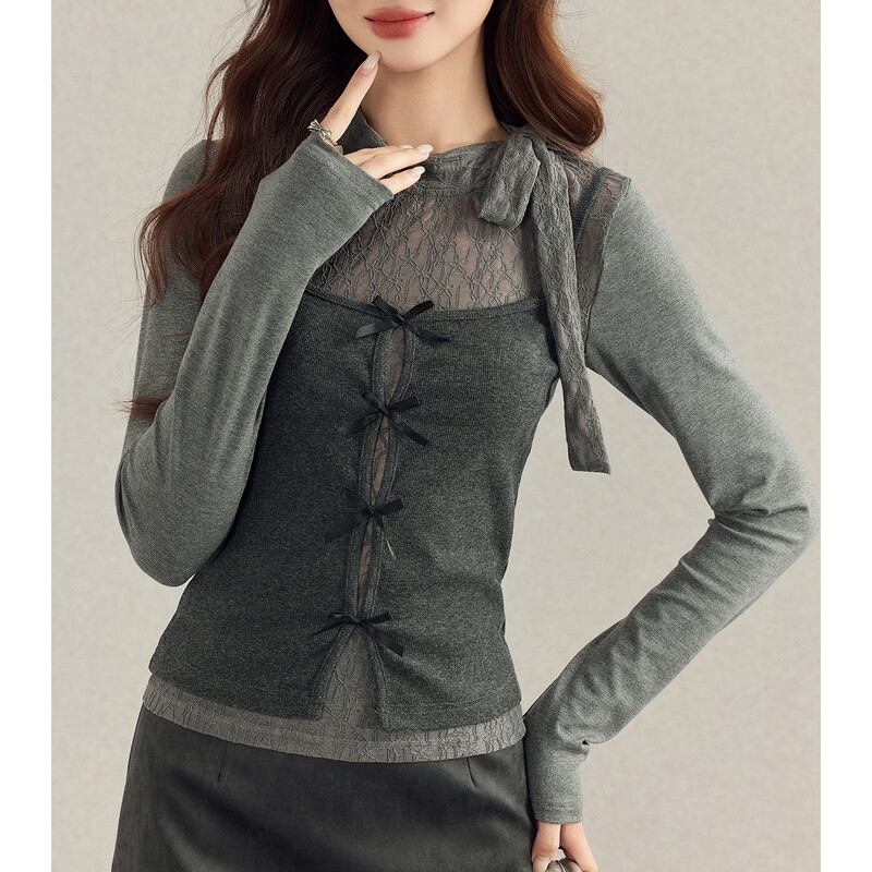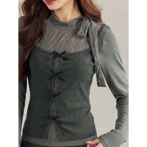 胸元にあしらわれた細リボンと透け感のあるレースがフェミニンな印象でこのセットで華やかなスタイリングを完成させます。