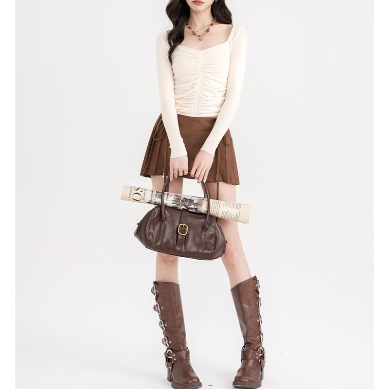 胸元のギャザーデザインが立体感を生み出し、シンプルながらも華やかさをプラス。