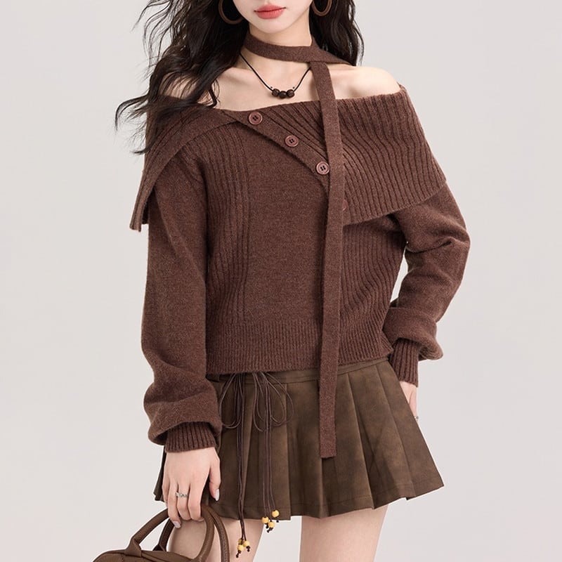 off-shoulder strap wrap knit m0927