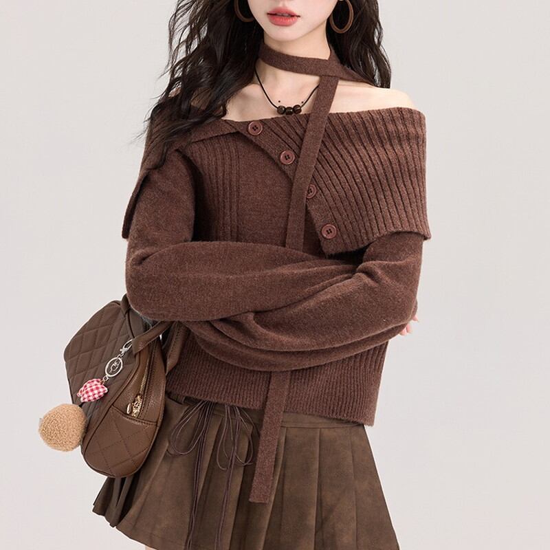デコルテを美しく魅せるオフショルデザインが印象的なニットプルオーバーです。