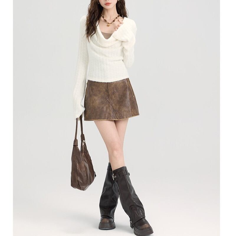 柔らかくふんわりとした質感が魅力のドレープネックニットです。