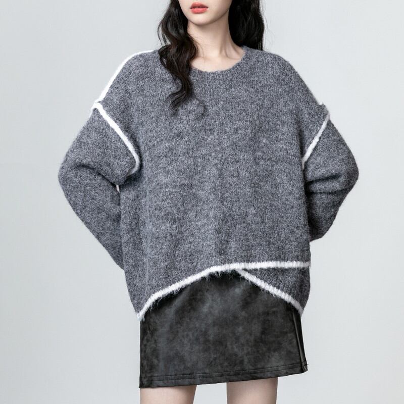 斜めのラインデザインが目を惹く、モードな印象のニットトップス。
