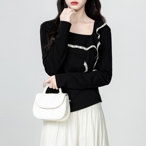 デコルテラインを美しく見せるスクエアネックが印象的なニットトップスです。