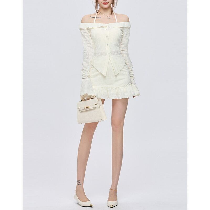 off-shoulder lace blouse camisole mini-skirt set-up m0935
