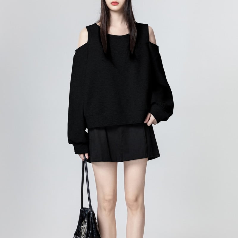 肩見せデザインが抜け感を生むショルダーカットスウェットトップスです。 ゆとりのあるシルエットがリラックスした雰囲気をつくり、動きのあるスリーブがスタイルに表情を添える一枚。 短めの着丈がバランスよくまとまり、軽やかな印象で着こなしを引き立てます。 デイリーのコーデにも取り入れやすいです。 【サイズ】 S:肩幅50cm/バスト110cm/袖丈50cm/着丈54cm M:肩幅51cm/バスト114cm/袖丈51cm/着丈55cm L:肩幅52cm/バスト118cm/袖丈52cm/着丈56cm 【カラー】 ・ブラック ・グレー 【素材】 ・ポリエステル ・コットン ・スパンデックス 【モデル】 身長:163cm 体重:43kg B/W:83/59 着用サイズ:M *Mille Msで人気のアイテムはこちら♪ https://www.millems-fashion.shop/categories/2981297 *新商品入荷中!/SALE情報をcheck https://www.millems-fashion.shop/ **ご購入前に必ずお読みください** https://www.millems-fashion.shop/blog/2020/10/28/193337 【お届けについて】 こちらの商品は海外店舗より直接発送となる為、 ご入金から10日〜3週間前後で発送致します。 ◆注意事項 ・タイミングによっては 商品在庫切れにより 注文キャンセルとさせていただく恐れもございますので、予めご了承くださいませ。 ・こちらは輸入品となります。日本製とは検品基準が異なる為、 新品未使用品でもごくわずかな汚れや ほつれがある場合もございます。 ・仕入れ工場を変えることがあるため、記載サイズと若干異なる場合がございます。 ・商品の色味は、お手持ちのスマートフォンの画面によって実物と若干異なる場合がございます。 ・イメージ違いやサイズ交換等、お客さまご都合による交換、返品は対応出来かねます。 【お支払方法】 ・クレジットカード決済 (VISA/Master/JCB/AMERICAN EXPRESS) ・キャリア決済 (docomo/au/SoftBank/Y!mobile/UQmobile) ・後払い決済 ーーーーーーーーーーーーーーーーーーーー *Mille Ms Instagram https://www.instagram.com/millems_official