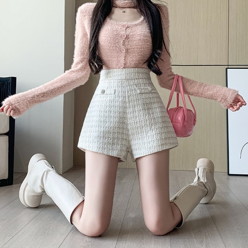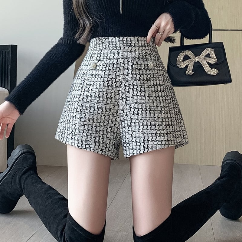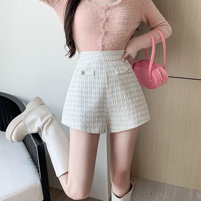 脚のラインをすっきりと見せるツイードハイウエストショートパンツです。 細かな表面感が上品に映り、スタイリングにさりげない華やぎを添える仕立て。 フロントボタンがアクセントとなり、トップスインもバランスよくまとまるデザイン。 ショートブーツとの相性が良く、デイリーに取り入れやすいです。 【サイズ】 S:ウエスト62cm/ヒップ80cm/着丈33cm M:ウエスト66cm/ヒップ84cm/着丈34cm L:ウエスト70cm/ヒップ88cm/着丈35cm XL:ウエスト74cm/ヒップ92cm/着丈36cm 【カラー】 ・ブラック ・アプリコット *Mille Msで人気のアイテムはこちら♪ https://www.millems-fashion.shop/categories/2981297 *新商品入荷中!/SALE情報をcheck https://www.millems-fashion.shop/ **ご購入前に必ずお読みください** https://www.millems-fashion.shop/blog/2020/10/28/193337 【お届けについて】 こちらの商品は海外店舗より直接発送となる為、 ご入金から10日〜3週間前後で発送致します。 ◆注意事項 ・タイミングによっては 商品在庫切れにより 注文キャンセルとさせていただく恐れもございますので、予めご了承くださいませ。 ・こちらは輸入品となります。日本製とは検品基準が異なる為、 新品未使用品でもごくわずかな汚れや ほつれがある場合もございます。 ・仕入れ工場を変えることがあるため、記載サイズと若干異なる場合がございます。 ・商品の色味は、お手持ちのスマートフォンの画面によって実物と若干異なる場合がございます。 ・イメージ違いやサイズ交換等、お客さまご都合による交換、返品は対応出来かねます。 【お支払方法】 ・クレジットカード決済 (VISA/Master/JCB/AMERICAN EXPRESS) ・キャリア決済 (docomo/au/SoftBank/Y!mobile/UQmobile) ・後払い決済 ーーーーーーーーーーーーーーーーーーーー *Mille Ms Instagram https://www.instagram.com/millems_official