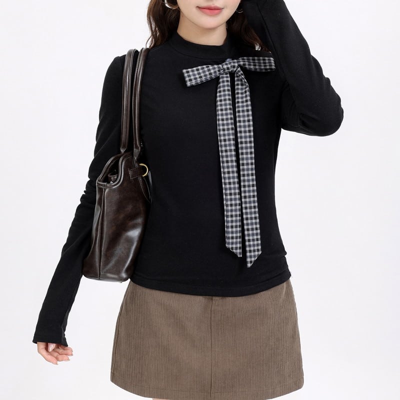 リボンが縦ラインを強調し、視覚的にすっきり見せてくれるデザイン。