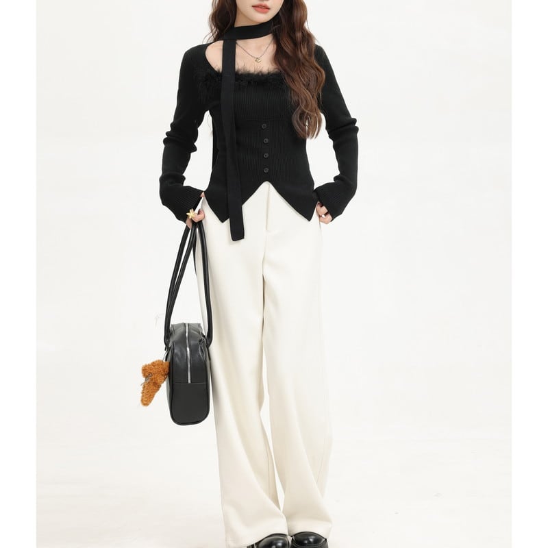 胸元にあしらったフェザーがやわらかな表情を添えるデザイントップスです。 チョーカースタイルのネックラインが首元をすっきり見せ、上品な印象をプラス。 ウエストに沿ったシルエットでメリハリのある着こなしが叶う一枚。 ボトム次第でフェミニンにもモードにも楽しめます。 【サイズ】 S:肩幅33cm/バスト68cm/袖丈59cm/着丈43cm M:肩幅34cm/バスト70cm/袖丈60cm/着丈44cm 【カラー】 ・アプリコット ・ブラック ・グレー 【モデル】 身長:164cm 体重:42kg B/W:77/60 着用サイズ:S *Mille Msで人気のアイテムはこちら♪ https://www.millems-fashion.shop/categories/2981297 *新商品入荷中!/SALE情報をcheck https://www.millems-fashion.shop/ **ご購入前に必ずお読みください** https://www.millems-fashion.shop/blog/2020/10/28/193337 【お届けについて】 こちらの商品は海外店舗より直接発送となる為、 ご入金から10日〜3週間前後で発送致します。 ◆注意事項 ・タイミングによっては 商品在庫切れにより 注文キャンセルとさせていただく恐れもございますので、予めご了承くださいませ。 ・こちらは輸入品となります。日本製とは検品基準が異なる為、 新品未使用品でもごくわずかな汚れや ほつれがある場合もございます。 ・仕入れ工場を変えることがあるため、記載サイズと若干異なる場合がございます。 ・商品の色味は、お手持ちのスマートフォンの画面によって実物と若干異なる場合がございます。 ・イメージ違いやサイズ交換等、お客さまご都合による交換、返品は対応出来かねます。 【お支払方法】 ・クレジットカード決済 (VISA/Master/JCB/AMERICAN EXPRESS) ・キャリア決済 (docomo/au/SoftBank/Y!mobile/UQmobile) ・後払い決済 ーーーーーーーーーーーーーーーーーーーー *Mille Ms Instagram https://www.instagram.com/millems_official