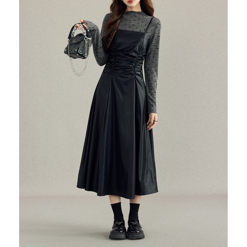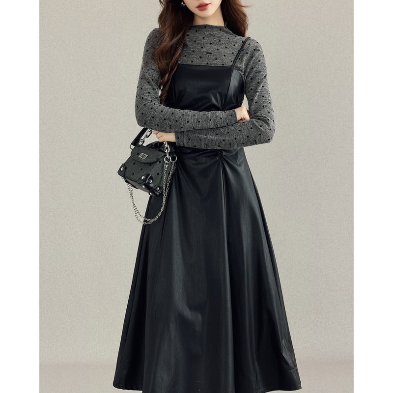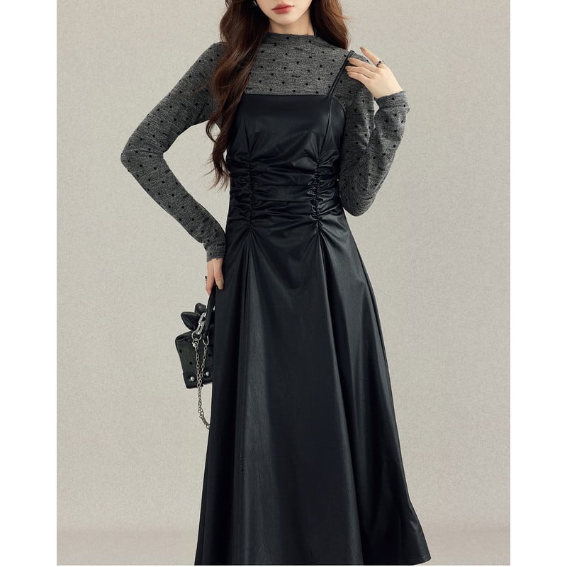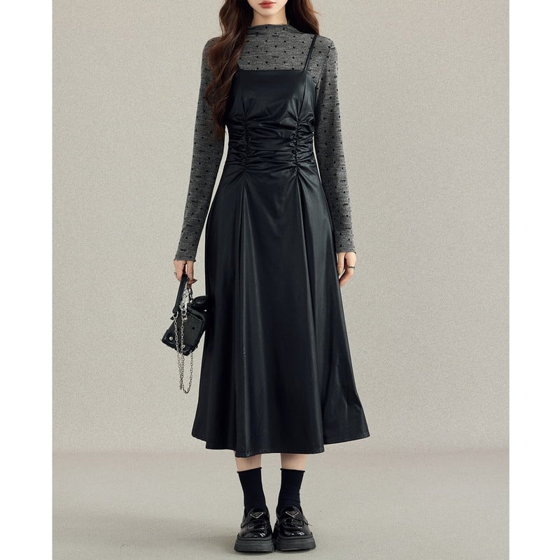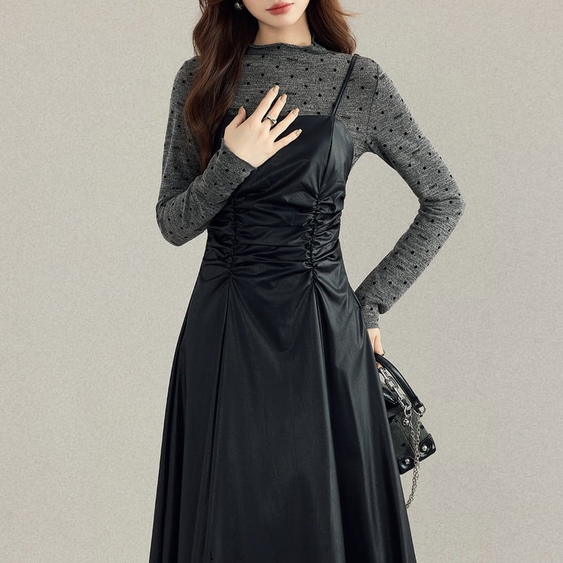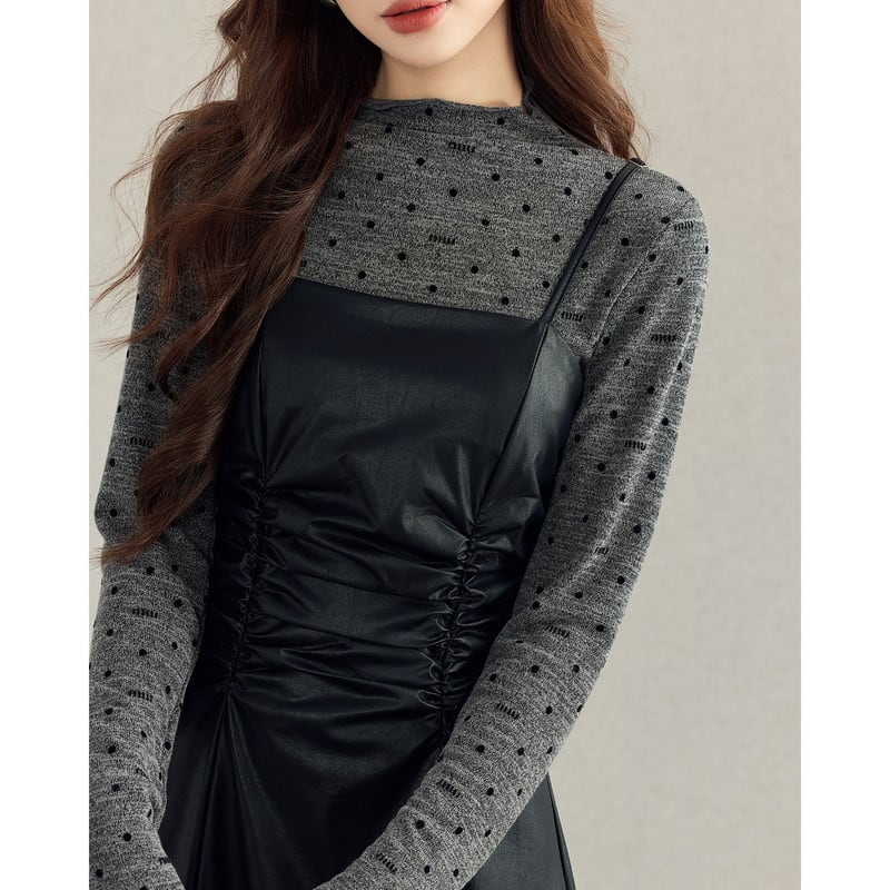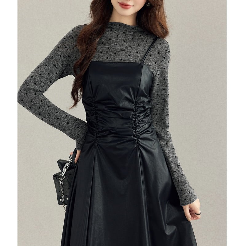 cutsew&one-piece dot leather gather set-up m0996