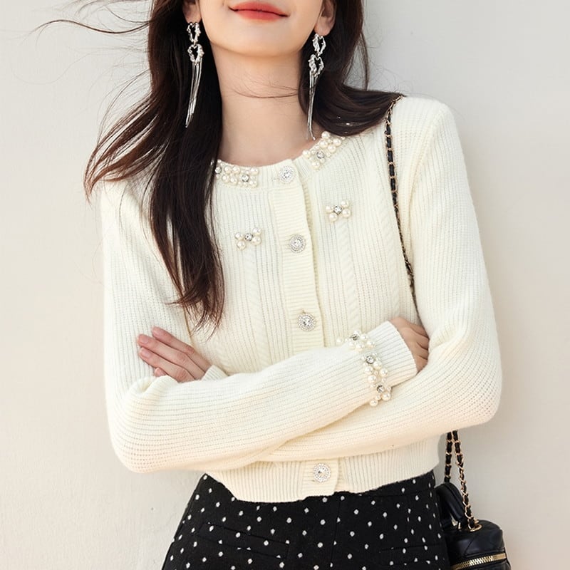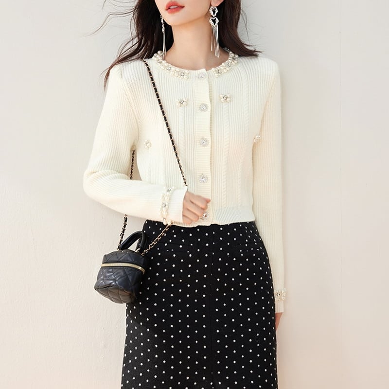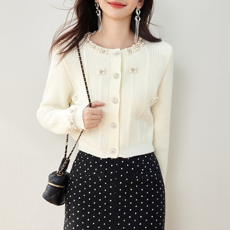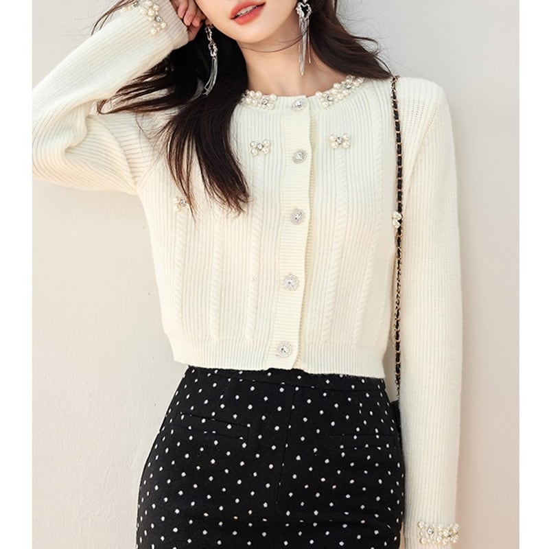 襟元と袖口にあしらわれた立体的なパールが、上品な華やかさを添えるニットカーディガンです。 コンパクトなシルエットがすっきりと見せ、フェミニンなスタイリングを品よくまとめるバランス。 ボタンや胸元の小さなポイントが視線を集め、シンプルながら存在感のある一枚。 デイリーにも特別な日にも合わせやすく、コーデに気分を添えてくれます。 【サイズ】 S:肩幅35cm/バスト78cm/袖丈59cm/着丈43cm M:肩幅36cm/バスト82cm/袖丈60cm/着丈44cm L:肩幅37cm/バスト86cm/袖丈61cm/着丈45cm 【カラー】 ・グレー ・アプリコット 【モデル】 身長:165cm 体重:45kg B/W:82/62 着用サイズ:S *Mille Msで人気のアイテムはこちら♪ https://www.millems-fashion.shop/categories/2981297 *新商品入荷中!/SALE情報をcheck https://www.millems-fashion.shop/ **ご購入前に必ずお読みください** https://www.millems-fashion.shop/blog/2020/10/28/193337 【お届けについて】 こちらの商品は海外店舗より直接発送となる為、 ご入金から10日〜3週間前後で発送致します。 ◆注意事項 ・タイミングによっては 商品在庫切れにより 注文キャンセルとさせていただく恐れもございますので、予めご了承くださいませ。 ・こちらは輸入品となります。日本製とは検品基準が異なる為、 新品未使用品でもごくわずかな汚れや ほつれがある場合もございます。 ・仕入れ工場を変えることがあるため、記載サイズと若干異なる場合がございます。 ・商品の色味は、お手持ちのスマートフォンの画面によって実物と若干異なる場合がございます。 ・イメージ違いやサイズ交換等、お客さまご都合による交換、返品は対応出来かねます。 【お支払方法】 ・クレジットカード決済 (VISA/Master/JCB/AMERICAN EXPRESS) ・キャリア決済 (docomo/au/SoftBank/Y!mobile/UQmobile) ・後払い決済 ーーーーーーーーーーーーーーーーーーーー *Mille Ms Instagram https://www.instagram.com/millems_official