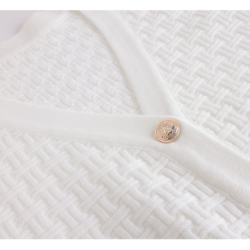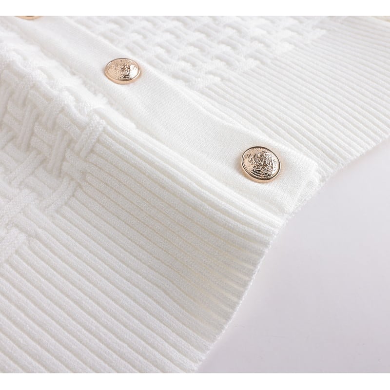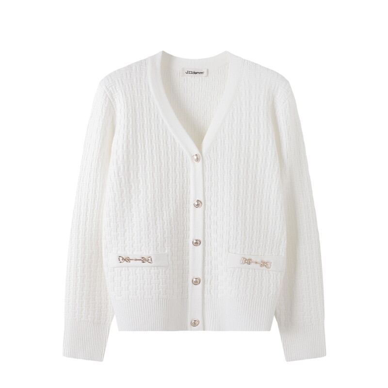 さりげない凹凸編みが上品に映える、柔らかな印象のニットカーディガンです。