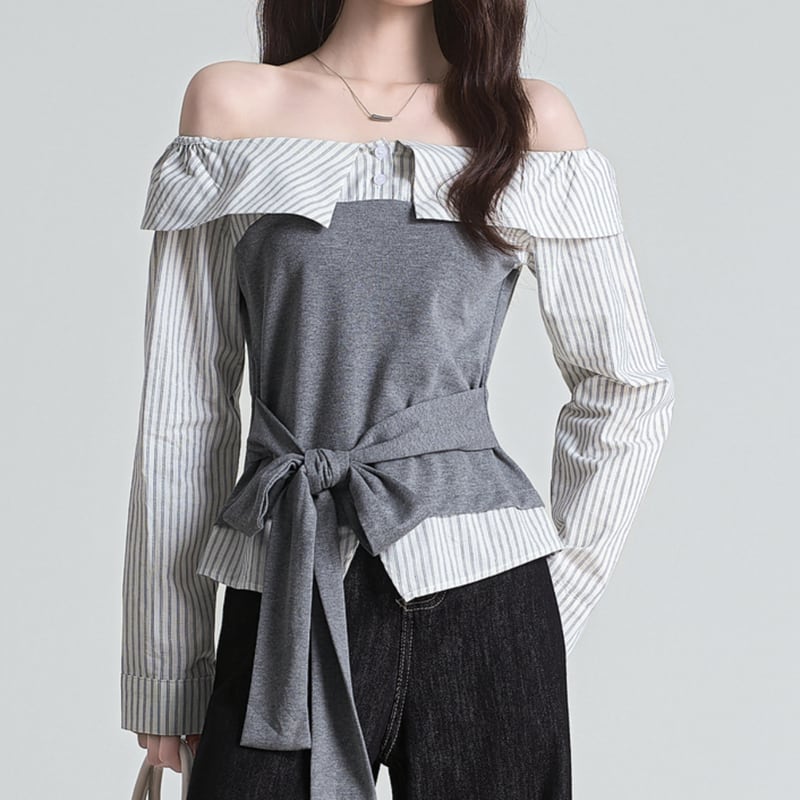 トレンド感あふれるオフショルダーデザインのブラウス。ストライプ柄がコーディネートにアクセントをプラスします。ウエスト部分のリボンでシルエットを調整でき、様々な着こなしが楽しめます。 【サイズ】 S:バスト71cm/袖丈54cm/着丈44cm M:バスト76cm/袖丈55cm/着丈45.5cm L:バスト79cm/袖丈56cm/着丈47cm 【カラー】 ・グレー ・ブルー *Mille Msで人気のアイテムはこちら♪ https://www.millems-fashion.shop/categories/2981297 *新商品入荷中!/SALE情報をcheck https://www.millems-fashion.shop/ **ご購入前に必ずお読みください** https://www.millems-fashion.shop/blog/2020/10/28/193337 【お届けについて】 こちらの商品は海外店舗より直接発送となる為、 ご入金から10日〜3週間前後で発送致します。 ◆注意事項 ・タイミングによっては 商品在庫切れにより 注文キャンセルとさせていただく恐れもございますので、予めご了承くださいませ。 ・こちらは輸入品となります。日本製とは検品基準が異なる為、 新品未使用品でもごくわずかな汚れや ほつれがある場合もございます。 ・仕入れ工場を変えることがあるため、記載サイズと若干異なる場合がございます。 ・商品の色味は、お手持ちのスマートフォンの画面によって実物と若干異なる場合がございます。 ・イメージ違いやサイズ交換等、お客さまご都合による交換、返品は対応出来かねます。 【お支払方法】 ・クレジットカード決済 (VISA/Master/JCB/AMERICAN EXPRESS) ・キャリア決済 (docomo/au/SoftBank/Y!mobile/UQmobile) ・後払い決済 ーーーーーーーーーーーーーーーーーーーー *Mille Ms Instagram https://www.instagram.com/millems_official