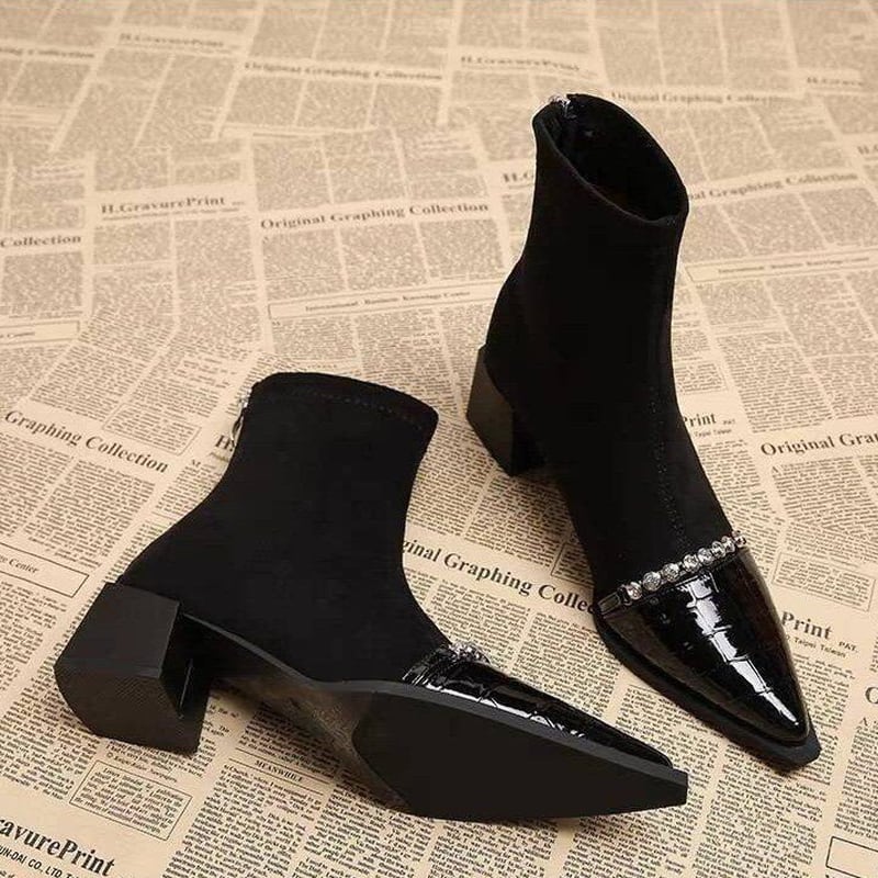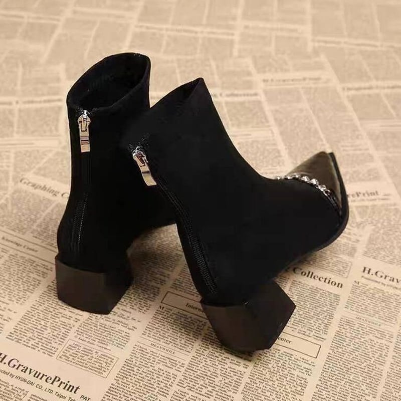 シャープな印象のポインテッドトゥと、安定感のあるチャンキーヒールが特徴のショートブーツ。履き口は伸縮性があり、スムーズな着脱をサポートします。デザイン性の高い切り替えと、さりげない装飾が足元を上品に演出。普段使いはもちろん、ちょっとしたお出かけにもおすすめです。 【サイズ】 35(22-22.5cm) 36(22.5-23cm) 37(23-23.5cm) 38(23.5-24cm) 39(24-24.5cm) 40(24.5-25cm) 【カラー】 ・ONE color *Mille Msで人気のアイテムはこちら♪ https://www.millems-fashion.shop/categories/2981297 *新商品入荷中!/SALE情報をcheck https://www.millems-fashion.shop/ **ご購入前に必ずお読みください** https://www.millems-fashion.shop/blog/2020/10/28/193337 【お届けについて】 こちらの商品は海外店舗より直接発送となる為、 ご入金から10日〜3週間前後で発送致します。 ◆注意事項 ・タイミングによっては 商品在庫切れにより 注文キャンセルとさせていただく恐れもございますので、予めご了承くださいませ。 ・こちらは輸入品となります。日本製とは検品基準が異なる為、 新品未使用品でもごくわずかな汚れや ほつれがある場合もございます。 ・仕入れ工場を変えることがあるため、記載サイズと若干異なる場合がございます。 ・商品の色味は、お手持ちのスマートフォンの画面によって実物と若干異なる場合がございます。 ・イメージ違いやサイズ交換等、お客さまご都合による交換、返品は対応出来かねます。 【お支払方法】 ・クレジットカード決済 (VISA/Master/JCB/AMERICAN EXPRESS) ・キャリア決済 (docomo/au/SoftBank/Y!mobile/UQmobile) ・後払い決済 ーーーーーーーーーーーーーーーーーーーー *Mille Ms Instagram https://www.instagram.com/millems_official
