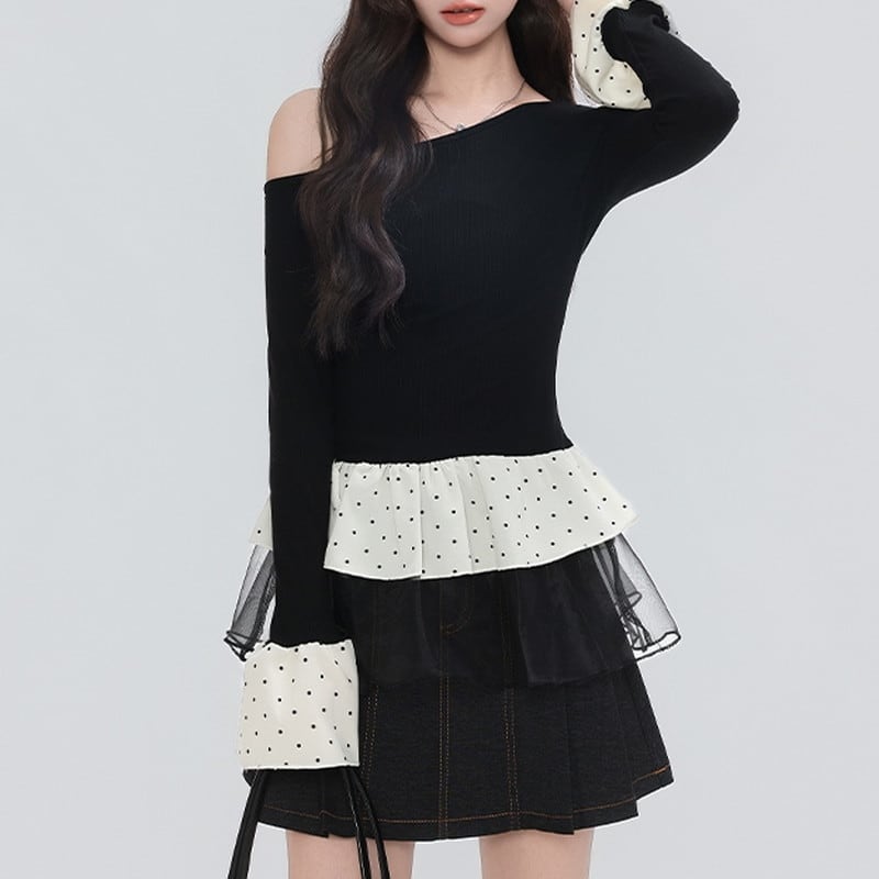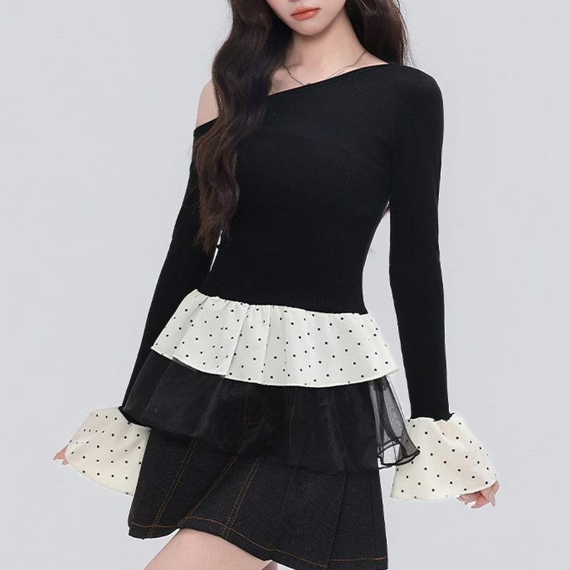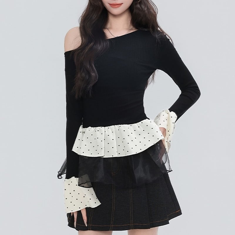 片方のショルダーが覗くアシンメトリーなデザインで、着こなしに個性が宿る仕上がり。