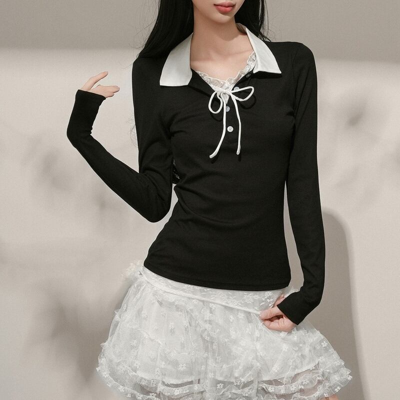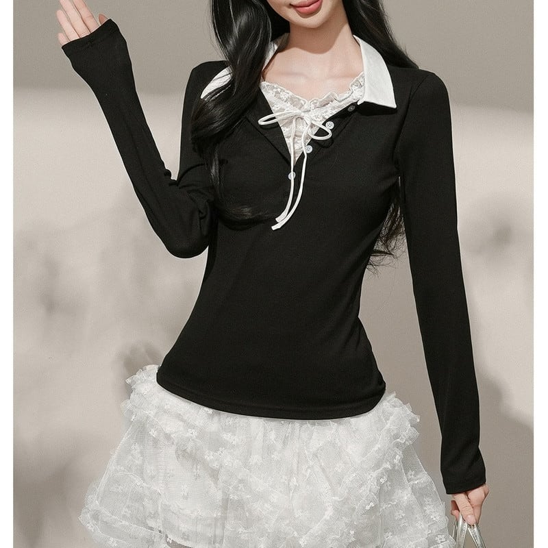 レースの重なりが可憐な雰囲気のレースアップトップスです。
