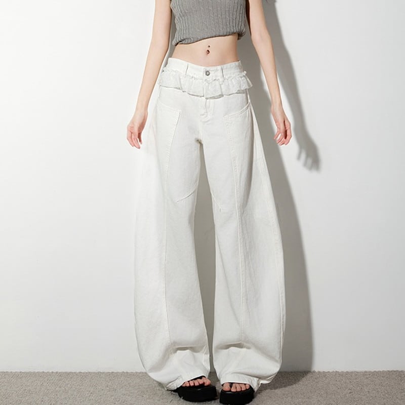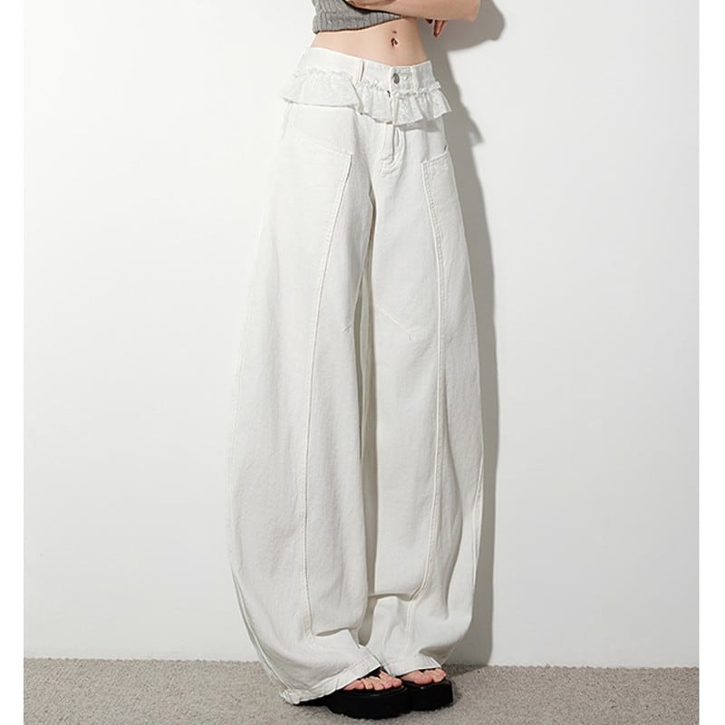 ウエストのフリルデザインが目を引くデニムバレルパンツです。 たっぷりとしたシルエットが縦ラインを強調し、スタイリングに軽さと抜け感をプラス。 フロントのポケットディテールがほどよいカジュアルさを添え、トップスインも映えるバランスに。 スニーカーやサンダルとも相性が良く、季節のコーデを遊び心のある雰囲気に仕上げます。 【サイズ】 XS:ウエスト64cm/ヒップ93cm/着丈104cm S:ウエスト68cm/ヒップ97cm/着丈105cm M:ウエスト72cm/ヒップ101cm/着丈106cm L:ウエスト76cm/ヒップ105cm/着丈107cm XL:ウエスト80cm/ヒップ109cm/着丈108cm 【カラー】 ・ONE color *Mille Msで人気のアイテムはこちら♪ https://www.millems-fashion.shop/categories/2981297 *新商品入荷中!/SALE情報をcheck https://www.millems-fashion.shop/ **ご購入前に必ずお読みください** https://www.millems-fashion.shop/blog/2020/10/28/193337 【お届けについて】 こちらの商品は海外店舗より直接発送となる為、 ご入金から10日〜3週間前後で発送致します。 ◆注意事項 ・タイミングによっては 商品在庫切れにより 注文キャンセルとさせていただく恐れもございますので、予めご了承くださいませ。 ・こちらは輸入品となります。日本製とは検品基準が異なる為、 新品未使用品でもごくわずかな汚れや ほつれがある場合もございます。 ・仕入れ工場を変えることがあるため、記載サイズと若干異なる場合がございます。 ・商品の色味は、お手持ちのスマートフォンの画面によって実物と若干異なる場合がございます。 ・イメージ違いやサイズ交換等、お客さまご都合による交換、返品は対応出来かねます。 【お支払方法】 ・クレジットカード決済 (VISA/Master/JCB/AMERICAN EXPRESS) ・キャリア決済 (docomo/au/SoftBank/Y!mobile/UQmobile) ・後払い決済 ーーーーーーーーーーーーーーーーーーーー *Mille Ms Instagram https://www.instagram.com/millems_official