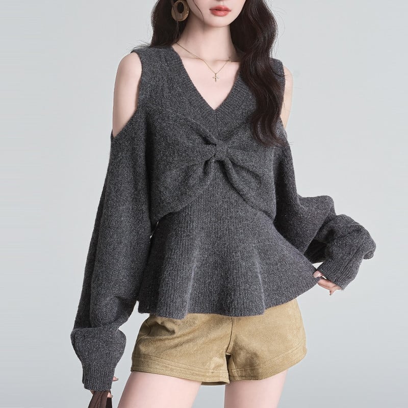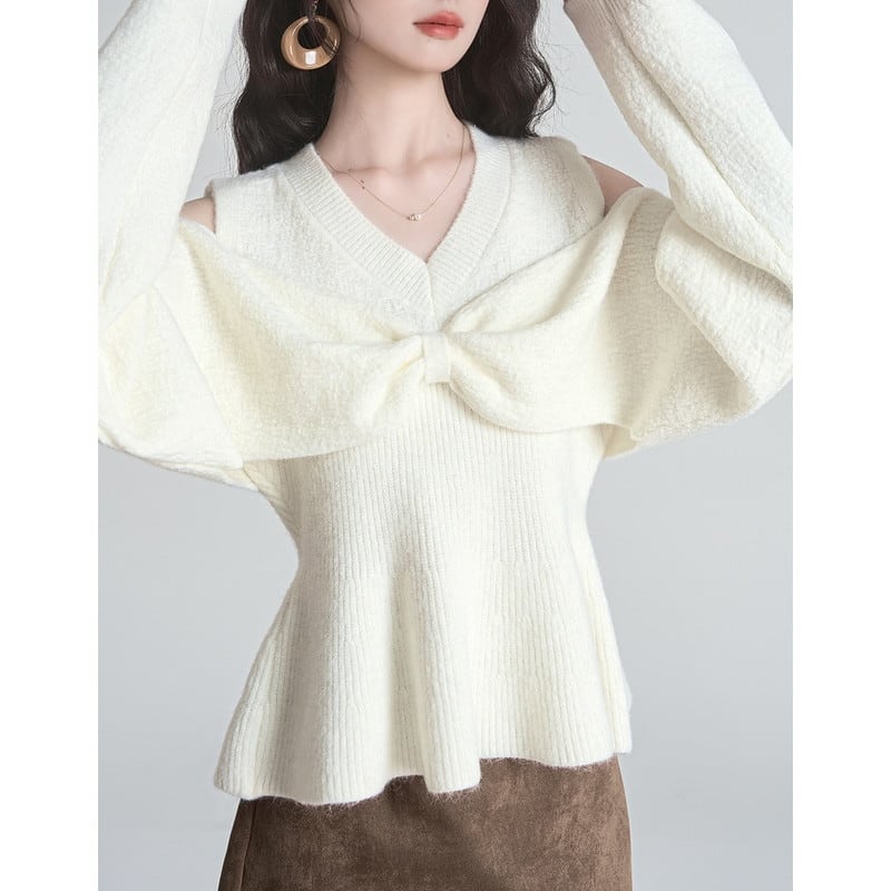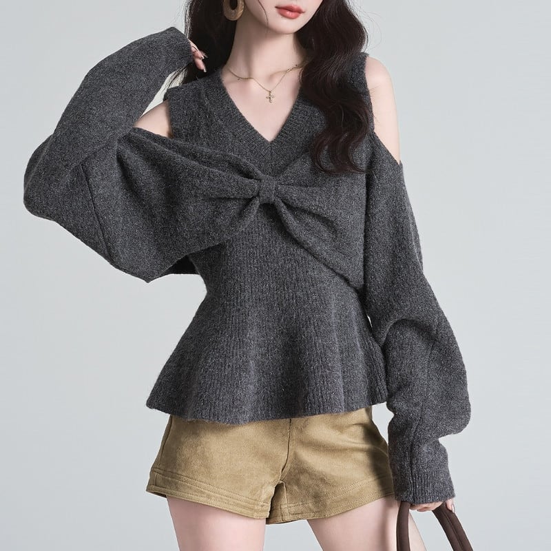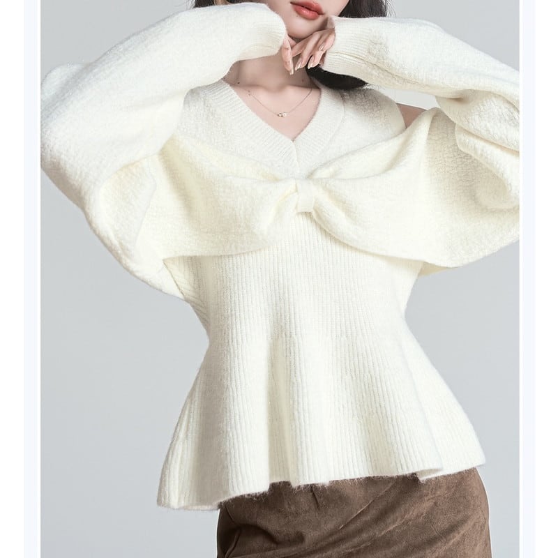 華やかなリボンデザインが目を惹くリボンカットショルダーニットです。 ほどよく肩を覗かせるカッティングが、抜け感のある大人バランスを演出。 ふんわり広がるヘムラインが、腰まわりを自然にカバーしてくれます。 デニムにもスカートにも馴染み、フェミニンなスタイルにも合わせやすいです。 【サイズ】 S:バスト92cm/袖丈52cm/着丈53cm M:バスト96cm/袖丈53cm/着丈54cm L:バスト100cm/袖丈54cm/着丈55cm 【カラー】 ・グレー ・オフホワイト *Mille Msで人気のアイテムはこちら♪ https://www.millems-fashion.shop/categories/2981297 *新商品入荷中!/SALE情報をcheck https://www.millems-fashion.shop/ **ご購入前に必ずお読みください** https://www.millems-fashion.shop/blog/2020/10/28/193337 【お届けについて】 こちらの商品は海外店舗より直接発送となる為、 ご入金から10日〜3週間前後で発送致します。 ◆注意事項 ・タイミングによっては 商品在庫切れにより 注文キャンセルとさせていただく恐れもございますので、予めご了承くださいませ。 ・こちらは輸入品となります。日本製とは検品基準が異なる為、 新品未使用品でもごくわずかな汚れや ほつれがある場合もございます。 ・仕入れ工場を変えることがあるため、記載サイズと若干異なる場合がございます。 ・商品の色味は、お手持ちのスマートフォンの画面によって実物と若干異なる場合がございます。 ・イメージ違いやサイズ交換等、お客さまご都合による交換、返品は対応出来かねます。 【お支払方法】 ・クレジットカード決済 (VISA/Master/JCB/AMERICAN EXPRESS) ・キャリア決済 (docomo/au/SoftBank/Y!mobile/UQmobile) ・後払い決済 ーーーーーーーーーーーーーーーーーーーー *Mille Ms Instagram https://www.instagram.com/millems_official