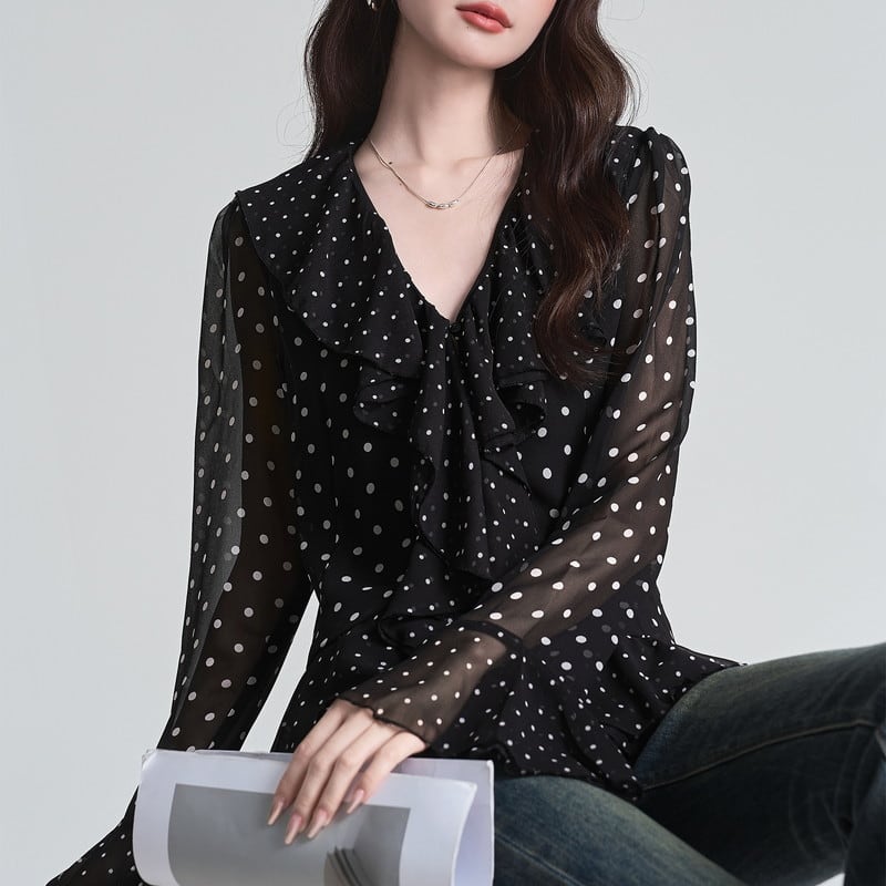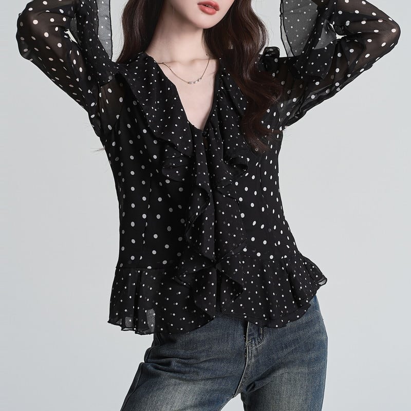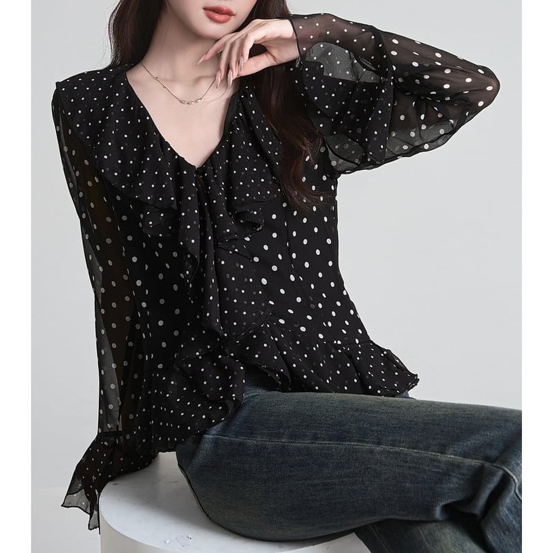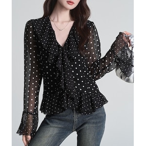 揺れ感のあるフリルが印象的なドットフリルブラウスです。