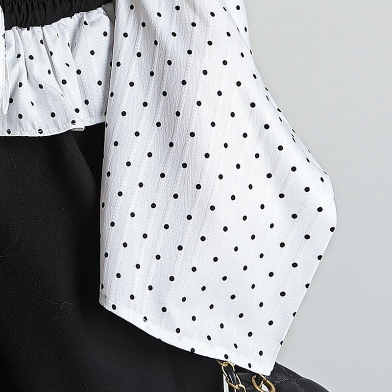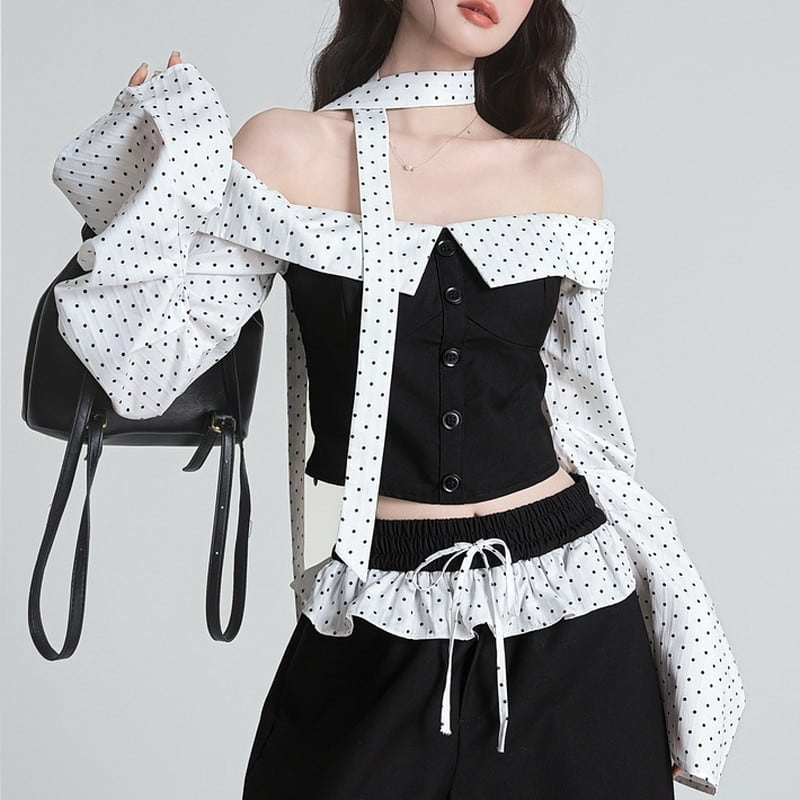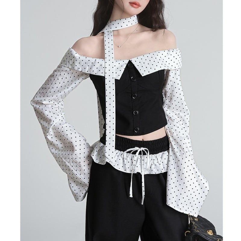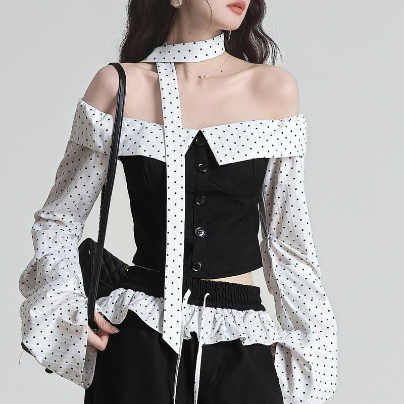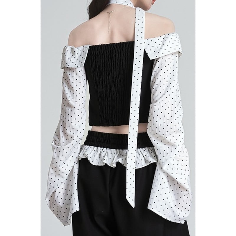 cropped dot tie off-shoulder tops m1193