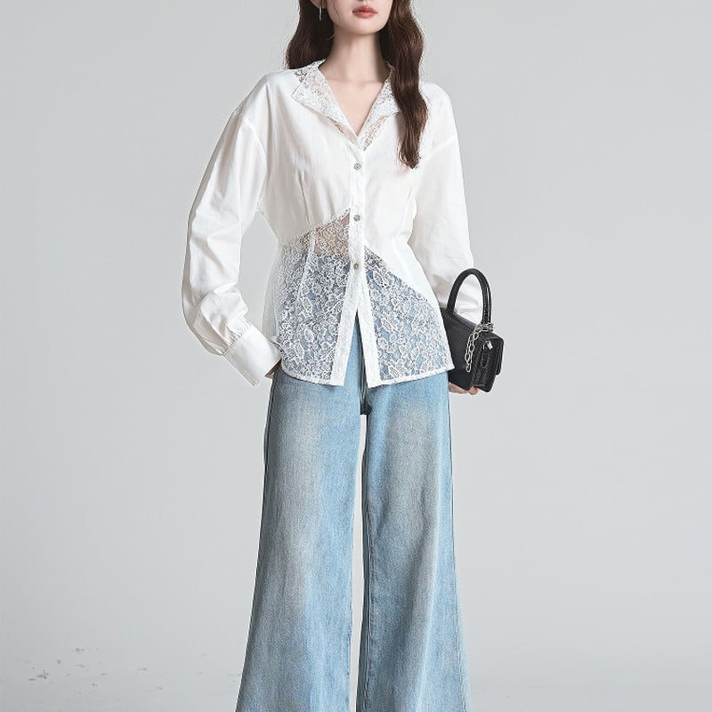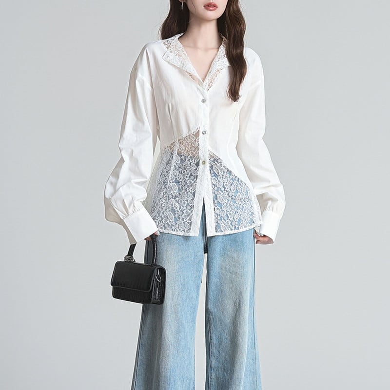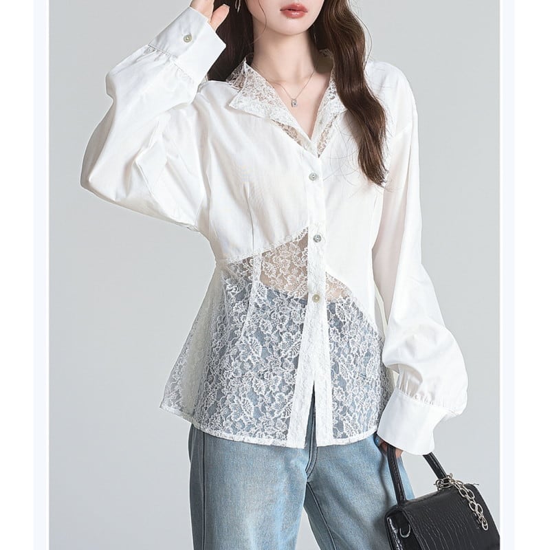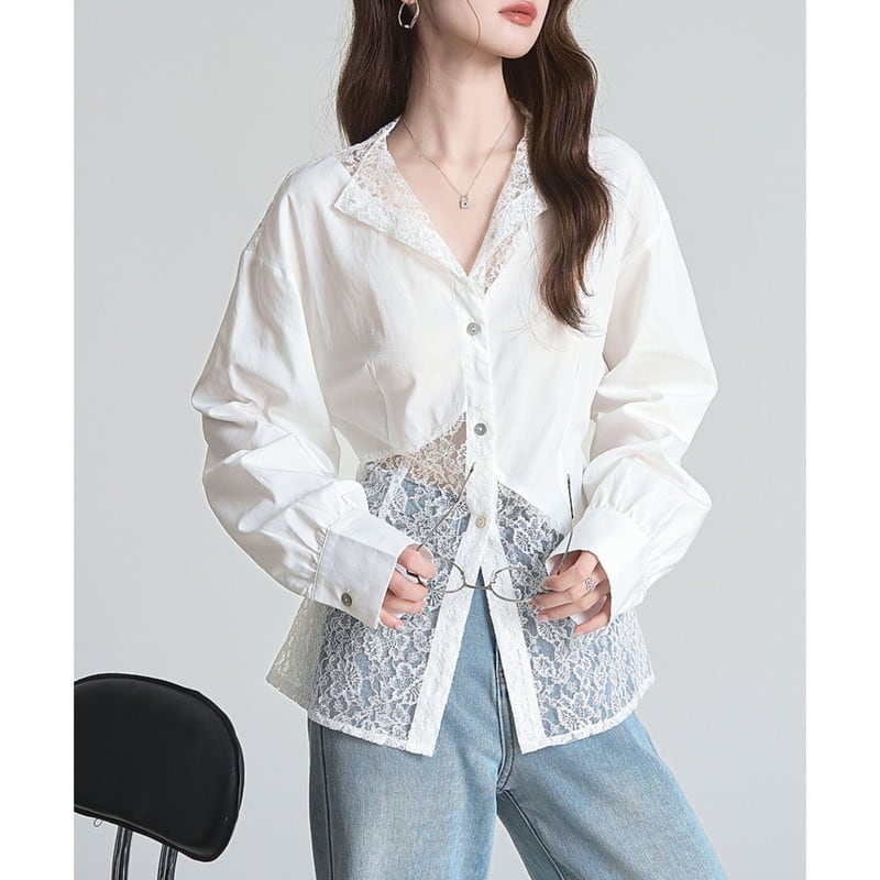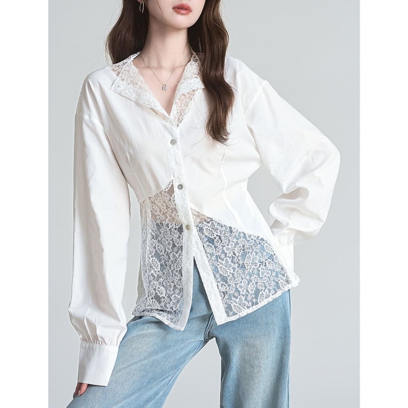 lace feminine asymmetry shirt m1198