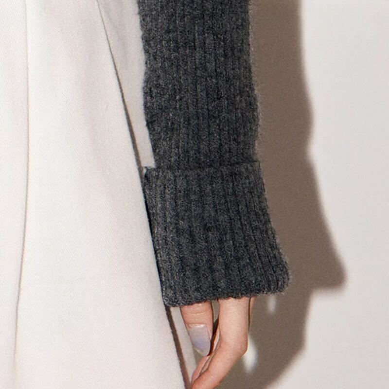 長めの袖口が手元に表情を生み、シンプルながら立体的に映えるシルエットです。