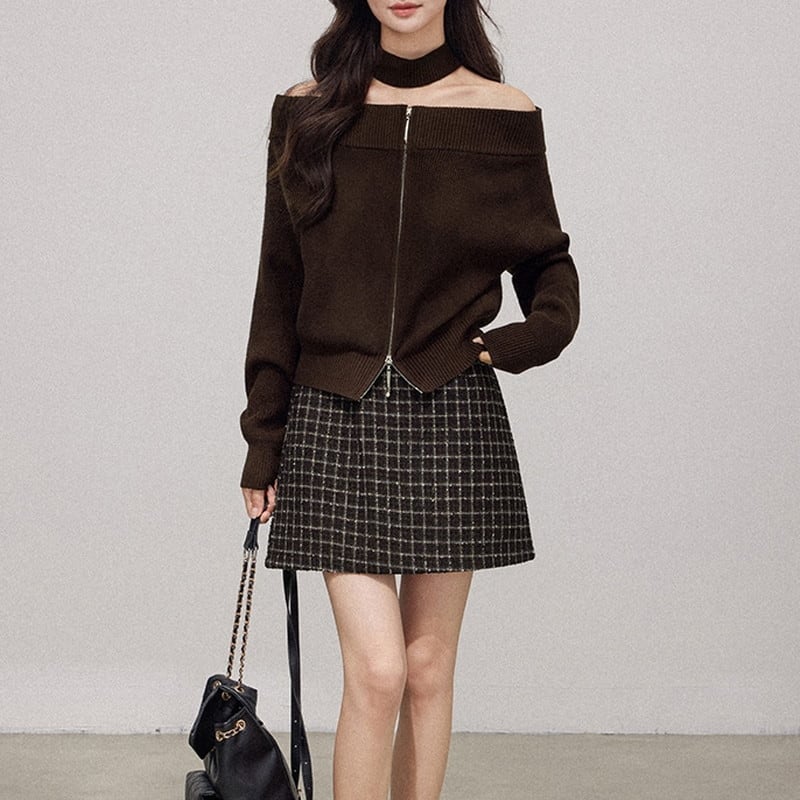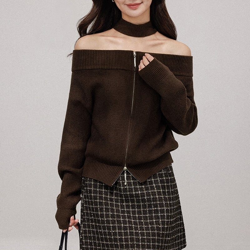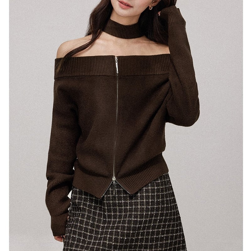 choker off-shoulder zip knit m1241