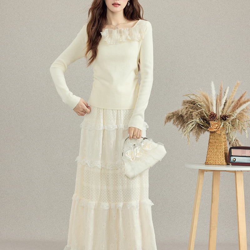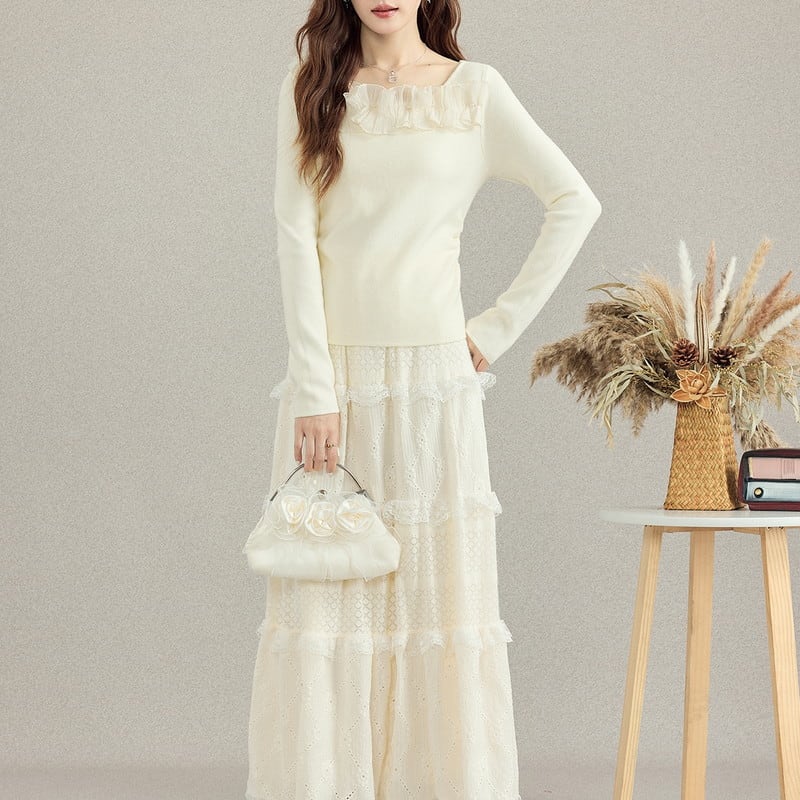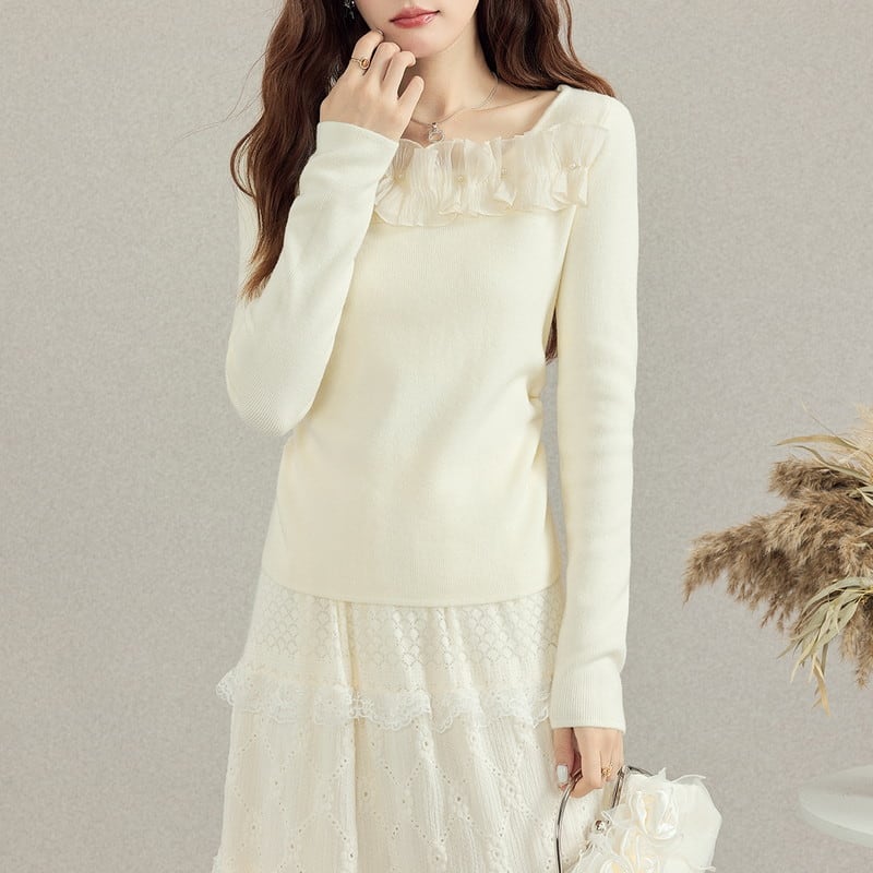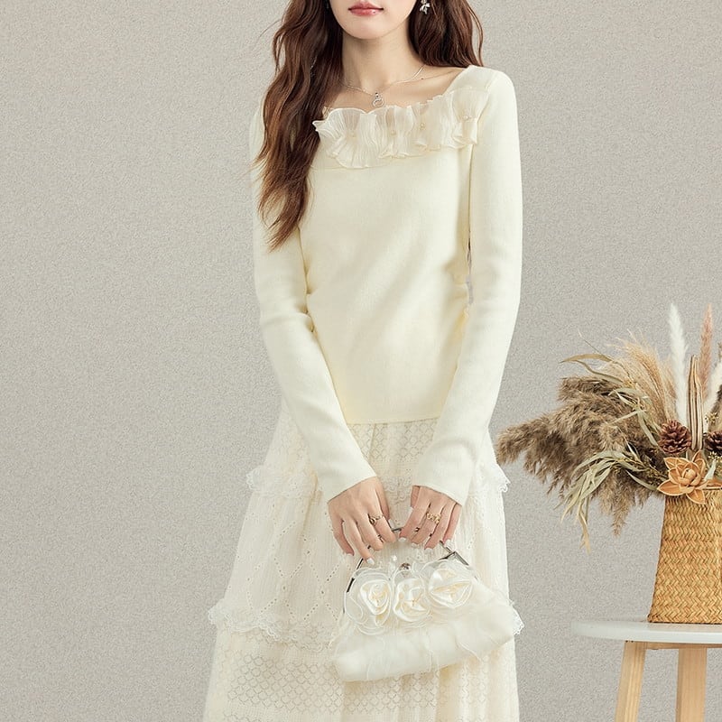frill slim feminine knit m1254