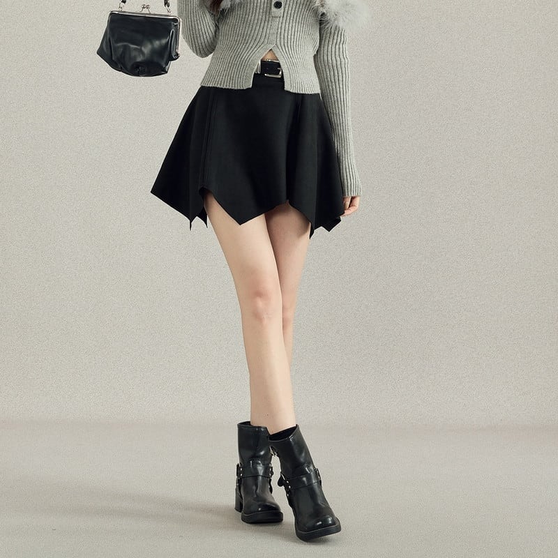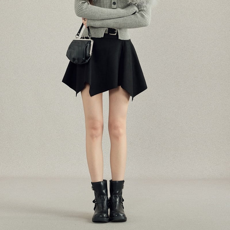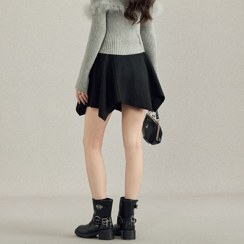 動きのあるアシメヘムが軽やかな印象のフレアスカートです。