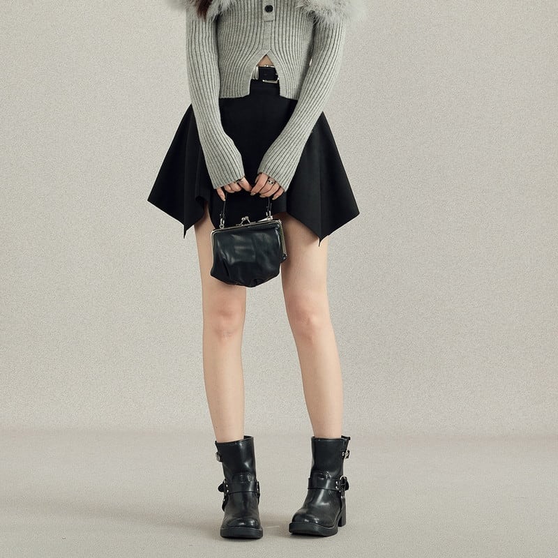 シンプルながらも存在感のあるデザインで、トップスを選ばず合わせやすい一枚。