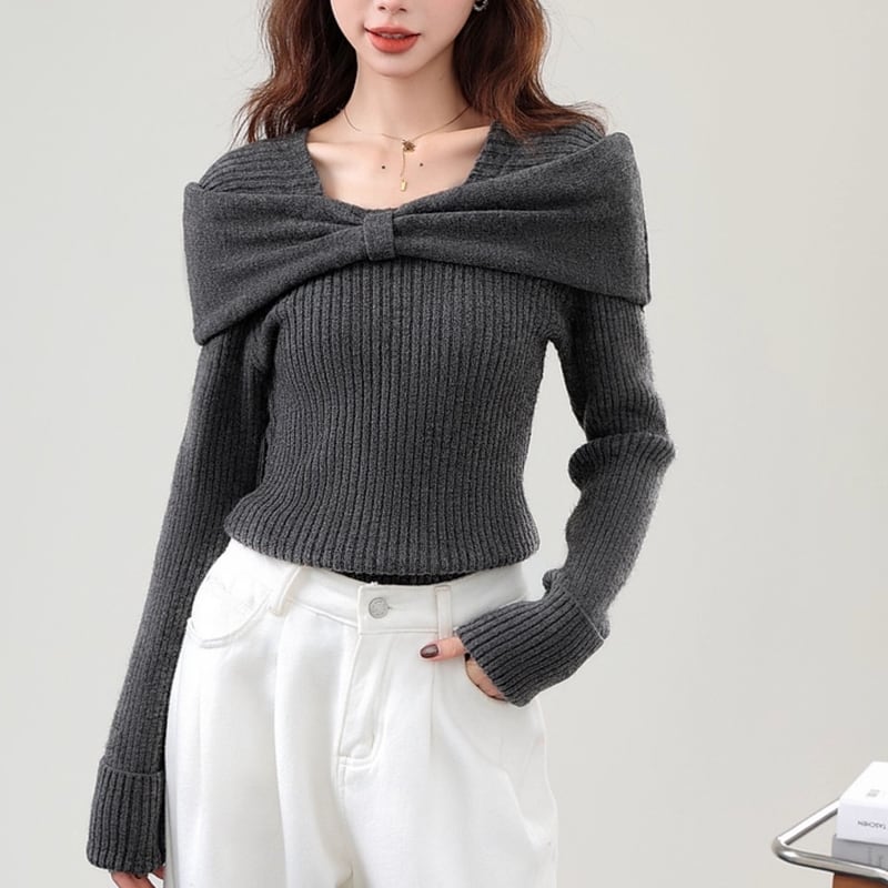 ボウタイデザインが目を引く、上品なニットトップ。ウエスト丈でスタイルアップ効果も期待でき、様々なボトムスと相性抜群です。普段使いはもちろん、ちょっとしたお出かけにも最適な一枚です。