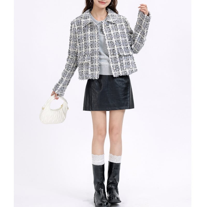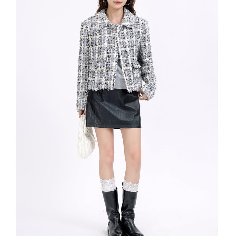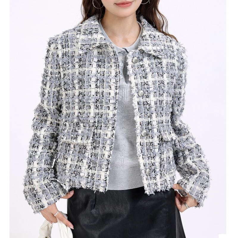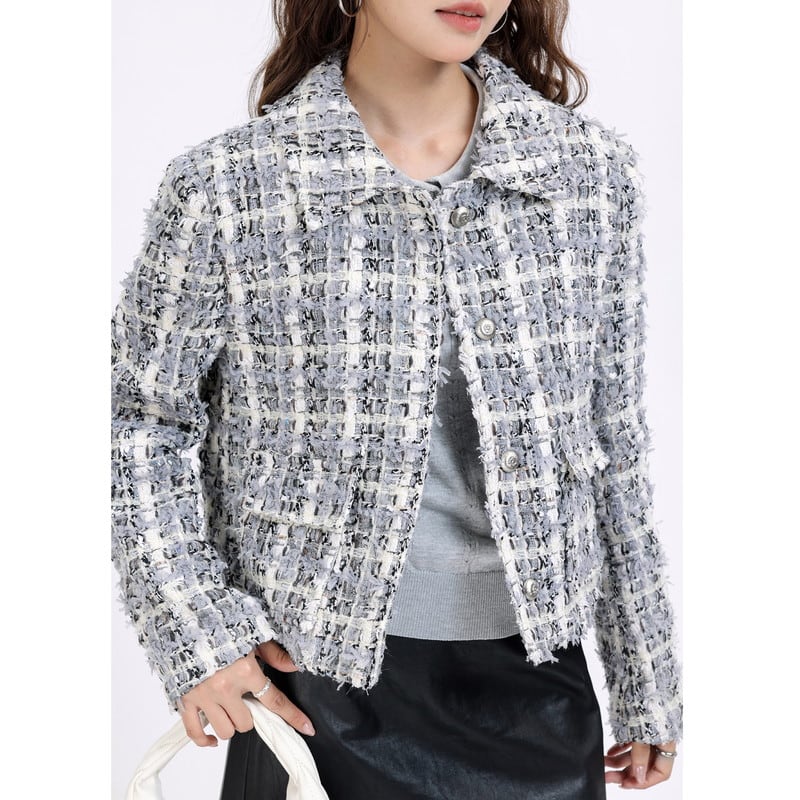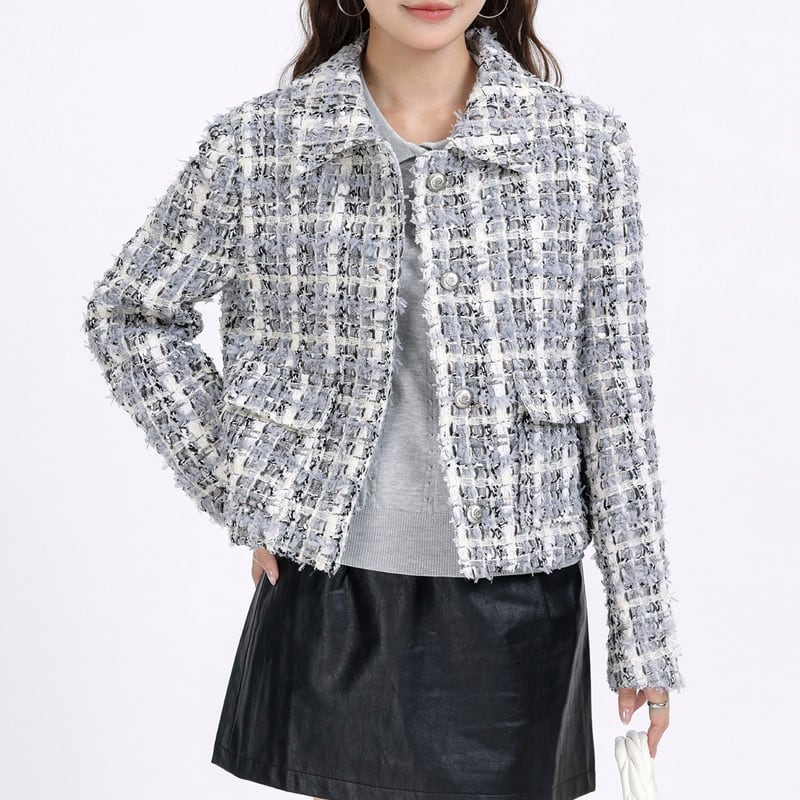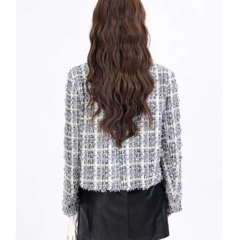 立体感のあるフリンジが魅力のツイードショートジャケットです。