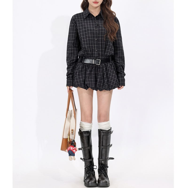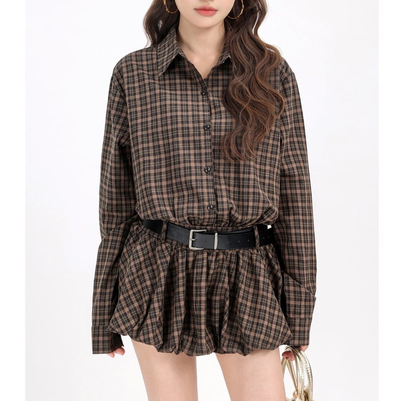 check balloon mini shirt-one-piece m1280