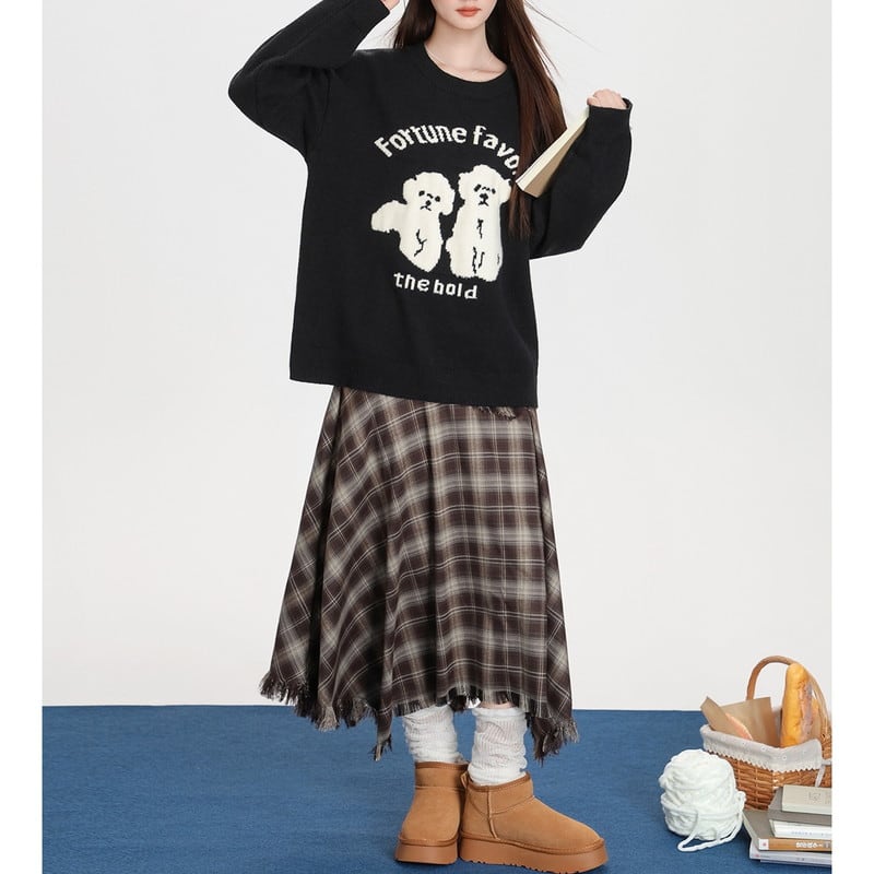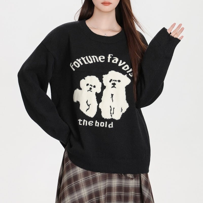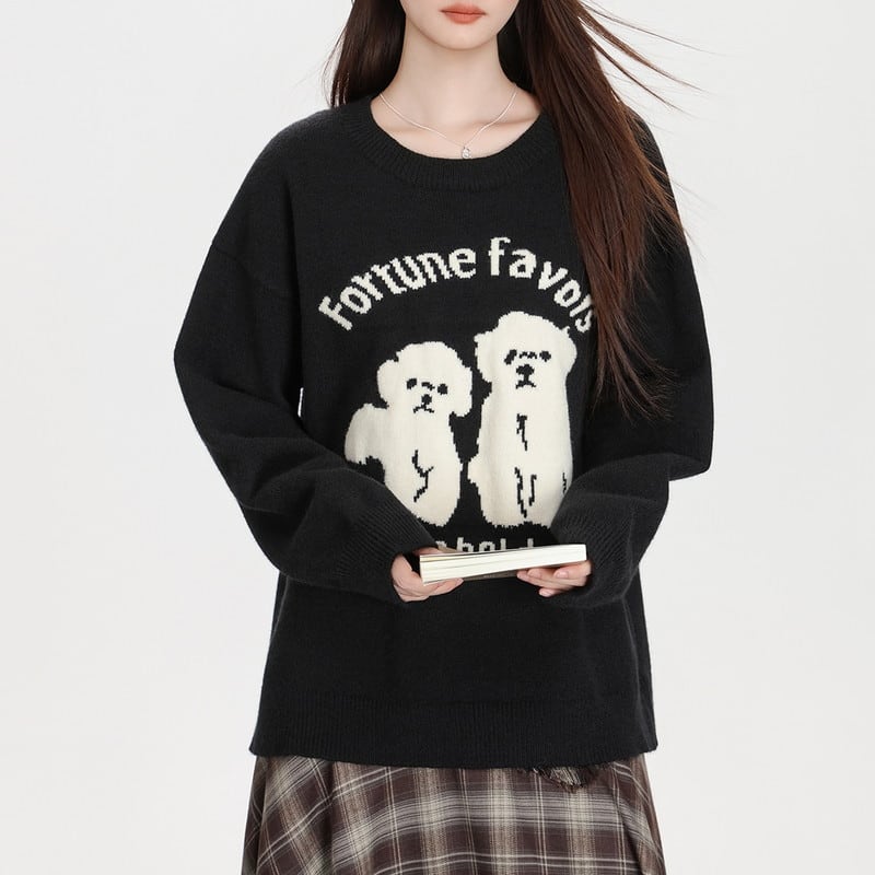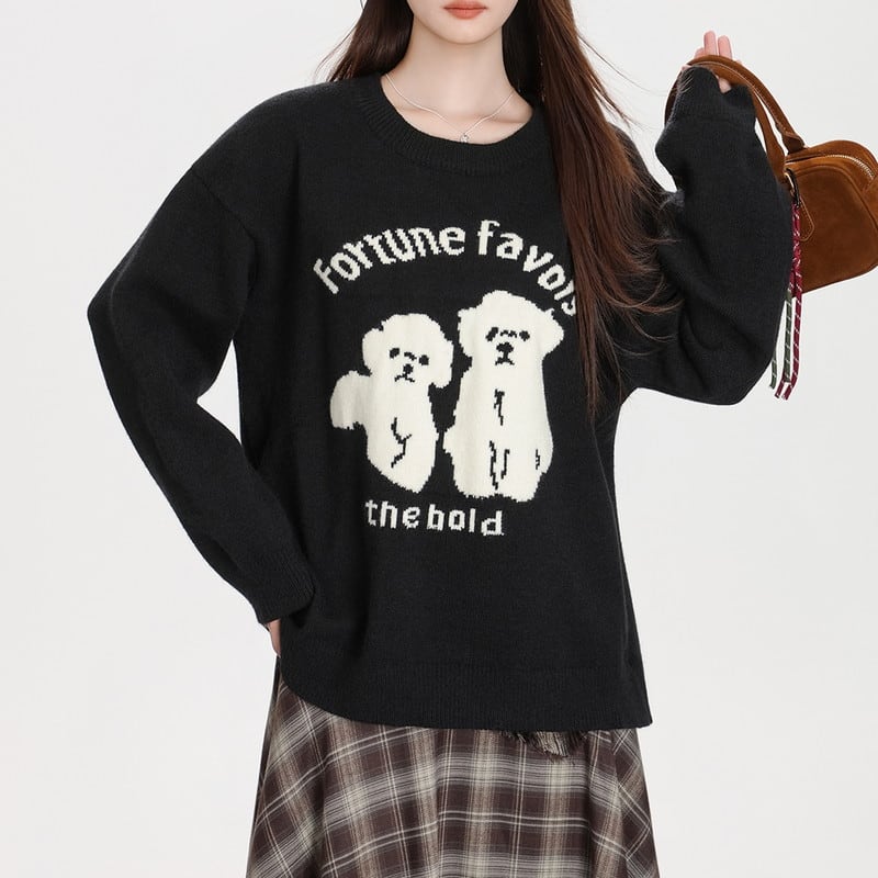 愛らしいドッグモチーフがポイントのジャカードニットプルオーバーです。