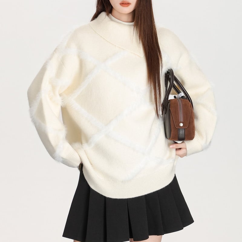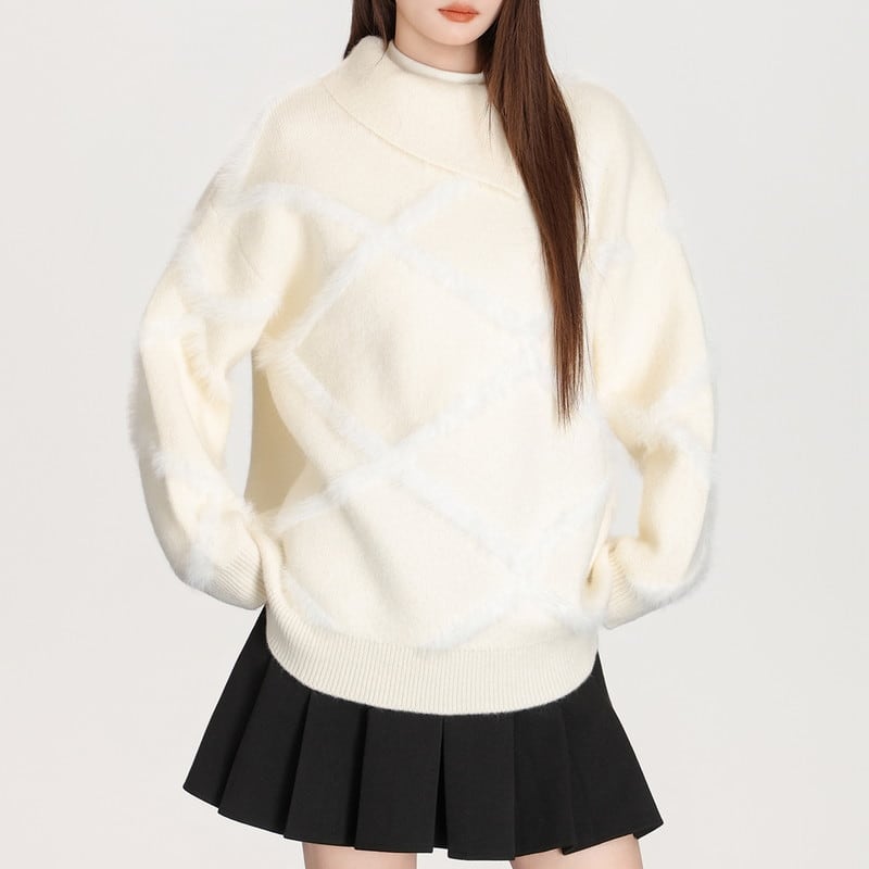 優しいライン柄がふんわり浮かぶニットプルオーバーです。