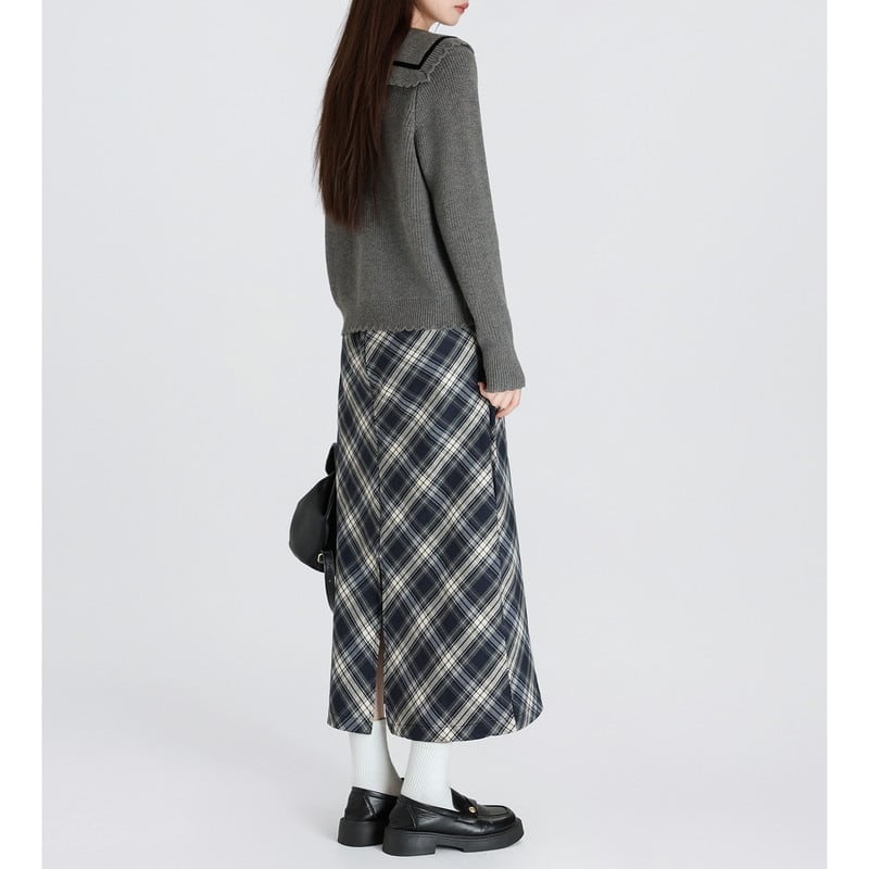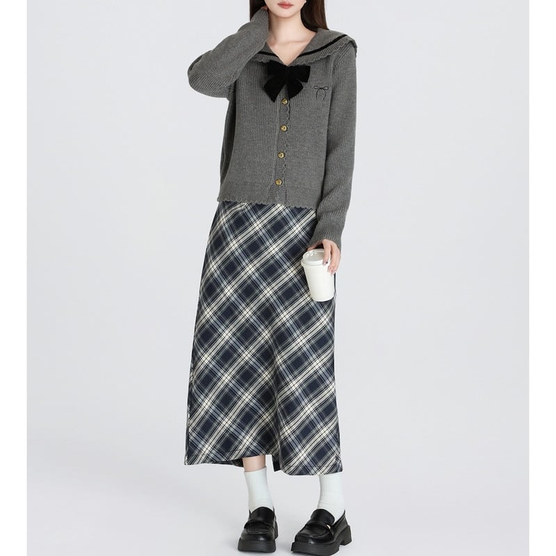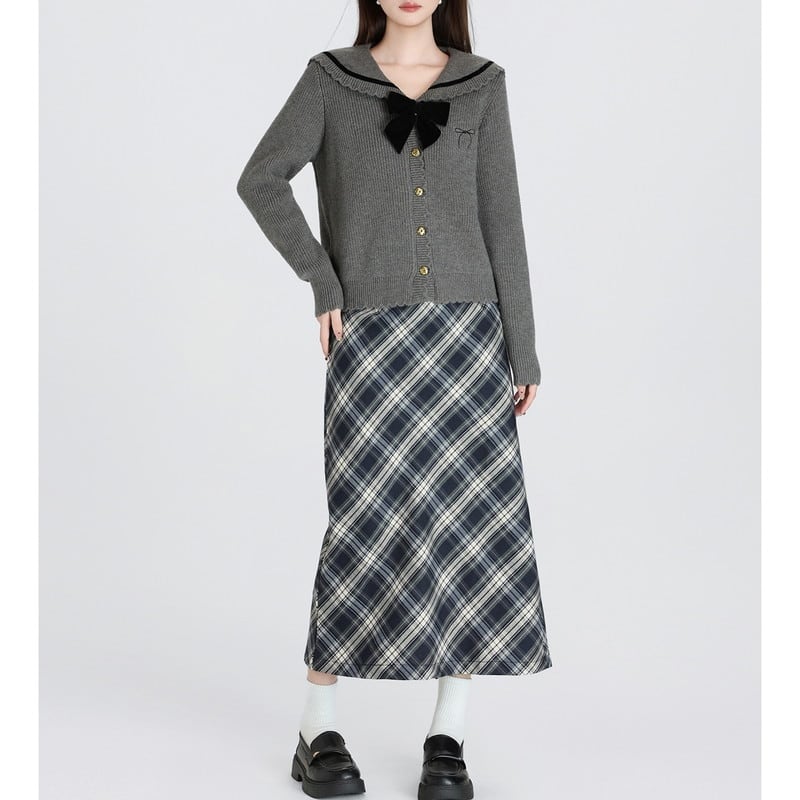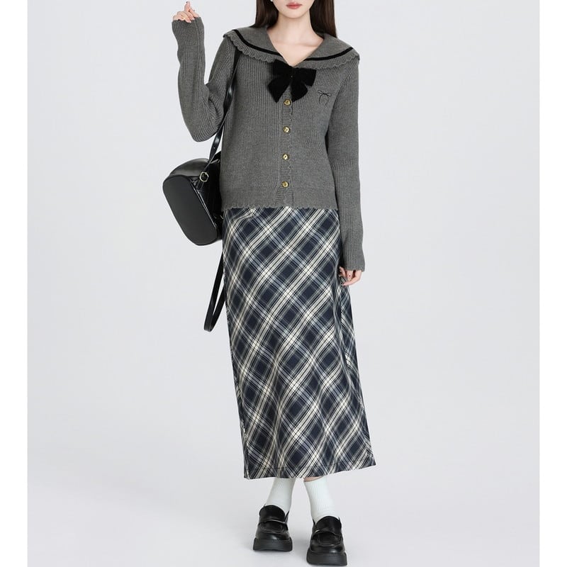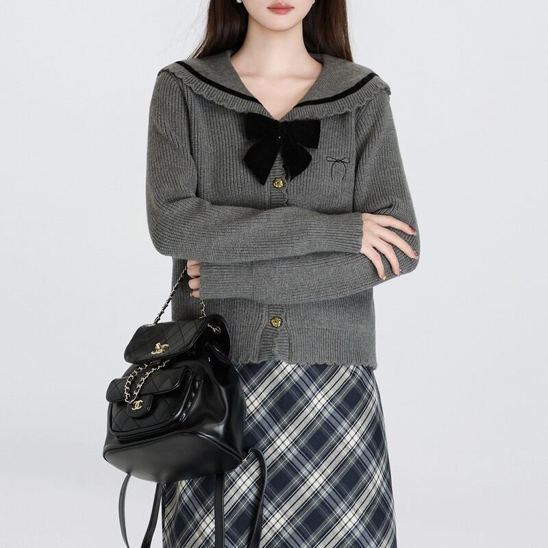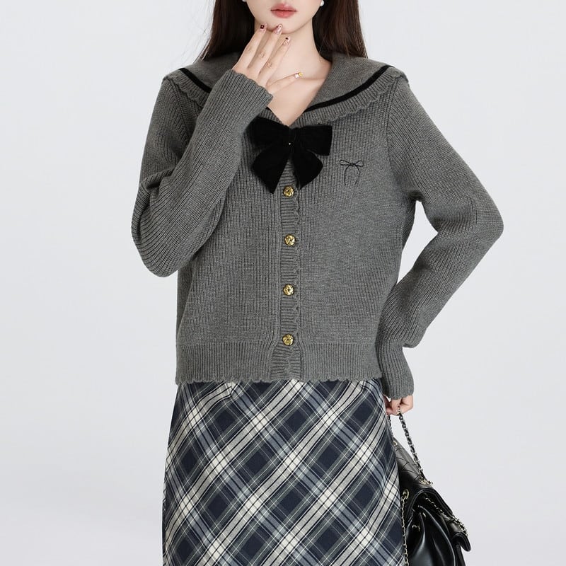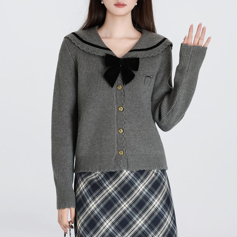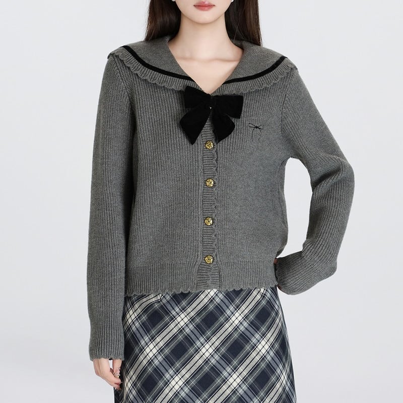 やわらかく寄り添うセーラーデザインのセーラーカラーニットカーディガンです。