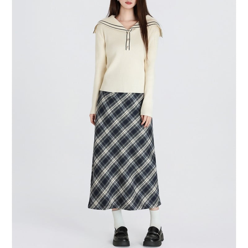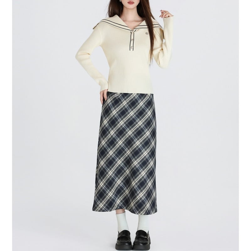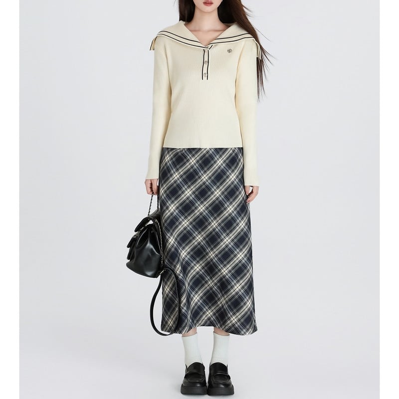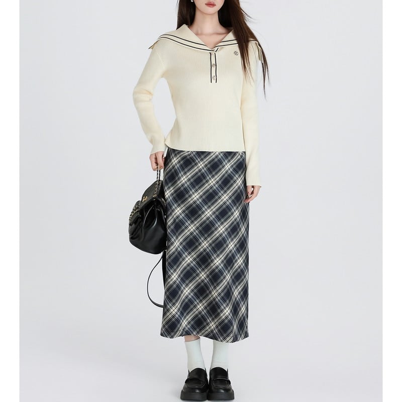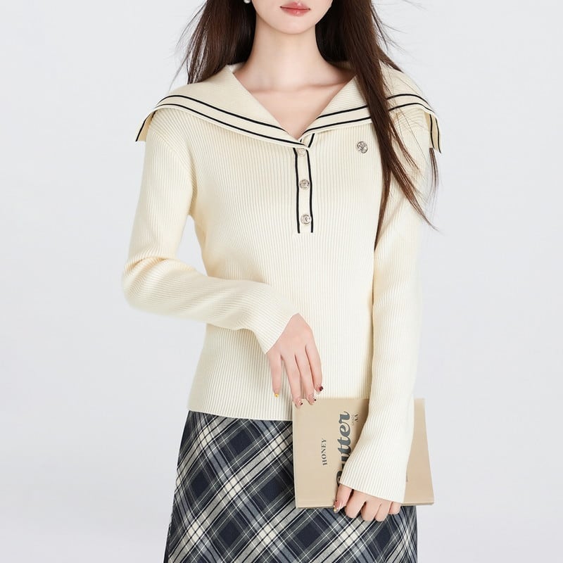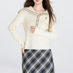 首元をすっきり見せるセーラーカラーが愛らしいセーラーカラーニットトップです。