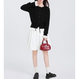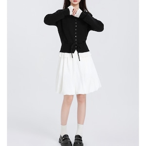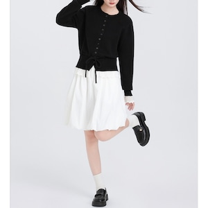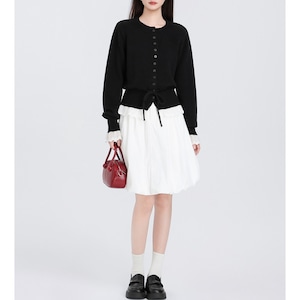 コンパクトなシルエットで上品にまとまり、リボンのウエストが優しいアクセントに。